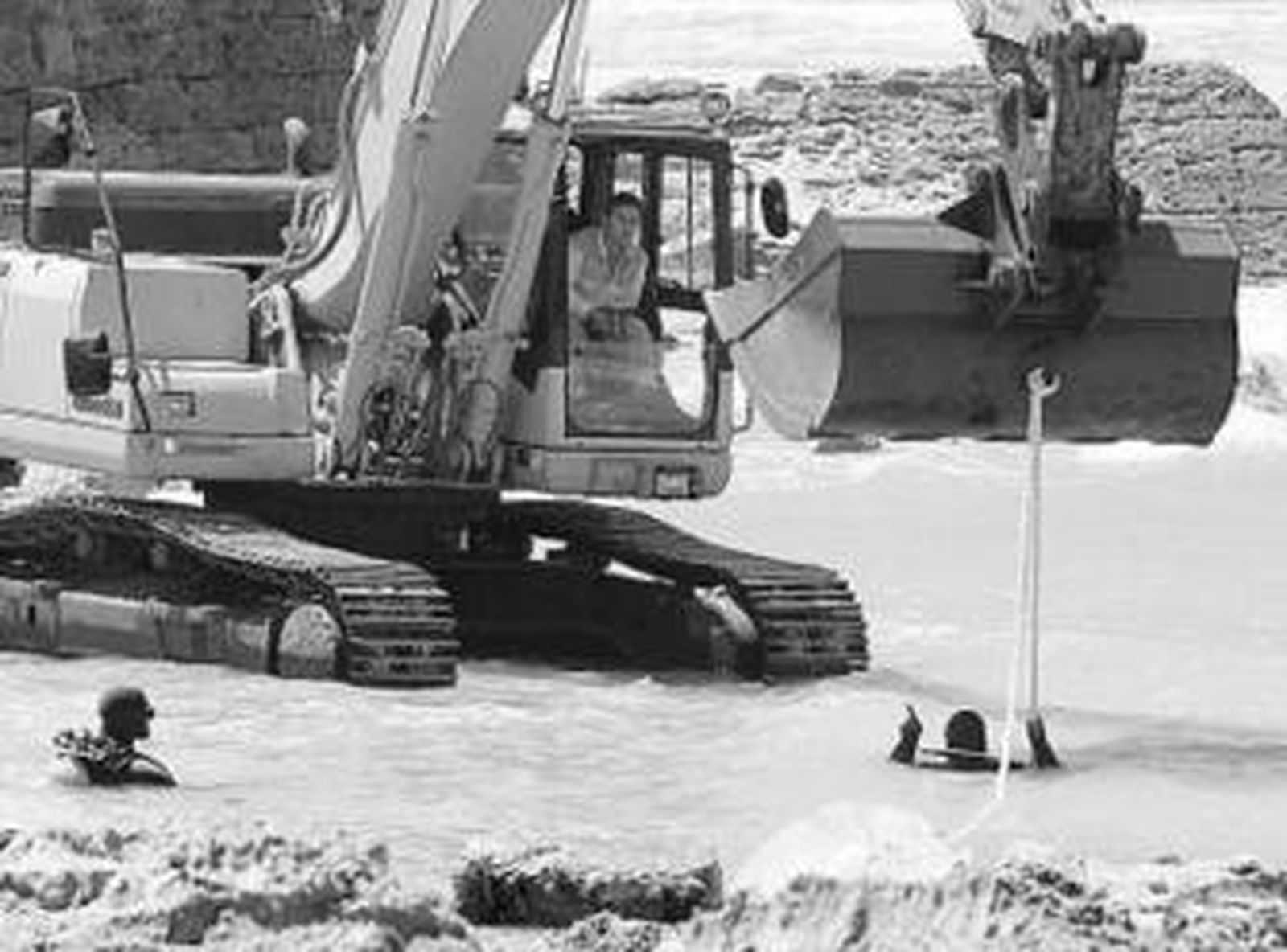 En Cortadura, donde las vallas están colocadas, según los vecinos, desde hace unos meses, se enterró ayer domingo una tubería a través de una zanja abierta con dirección al mar, y que fue cerrada después junto a las piedras que se habían extraído anteriormente. Varias máquinas excavadoras y un grupo de buzos se encargaron de esta labor.
