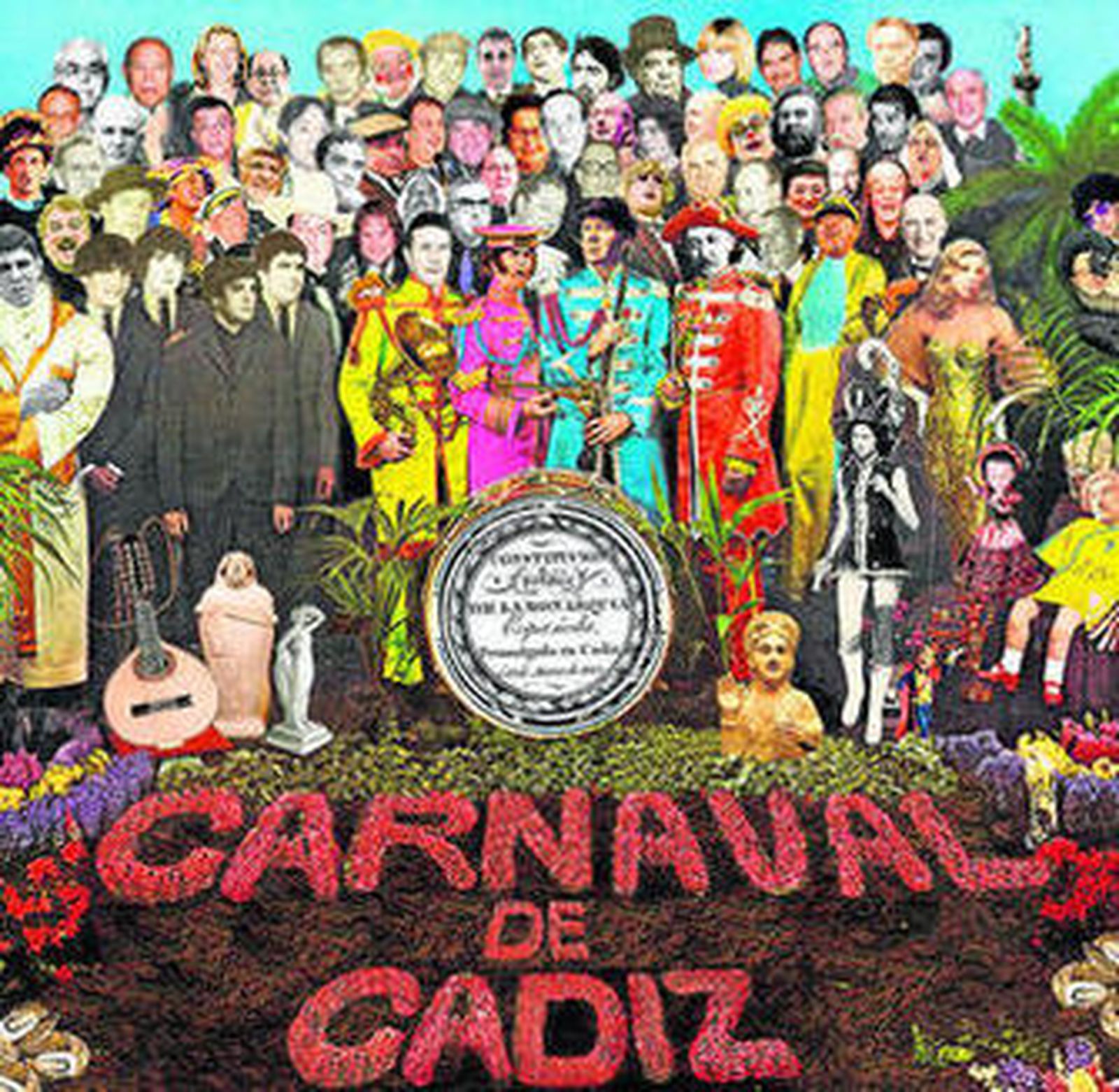 La inspiración llegó, claro está, de la legendaria portada del disco Sgt. Pepper's de The Beatles, y la idea surgió el pasado año, con motivo de la convocatoria del concurso del cartel del Carnaval de Cádiz 2012. "En tres noches, Fabián y yo le dimos forma a esta gran foto de grupo imposible hoy día, imaginaria, y con la que pretendíamos homenajear al Carnaval y a sus representantes en un año tan significativo para Cádiz", comentó Reina.