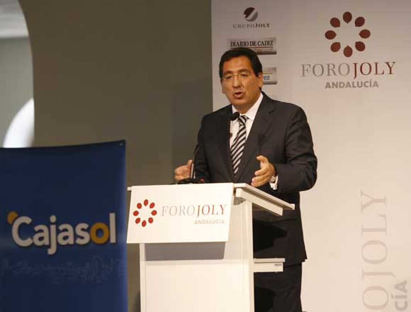 Reestructuración "absolutamente necesaria" y basada "siempre" en la rentabilidad. El presidente de Cajasol, Antonio Pulido, ponente del Foro Joly celebrado hoy en el Palacio de Congresos de Cádiz, dejó muy clara su posición y opinión sobre el proceso de concentración de entidades iniciado en el sistema financiero español. El mercado de capitales está sobredimensionado y "hay un exceso de oferta instalada" fruto de los años de auge económica. Según citó, entre 2001 y 2008, la red de oficinas bancarias ha pasado de 39.000 a 46.000 en el conjunto del país, y 6.000 de estas nuevas aperturas, es decir, el 85%, ha sido de cajas de ahorro.