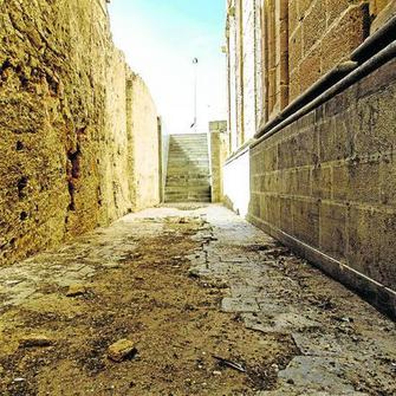 La clausura de la plaza también afecta a sus alrededores. Especialmente el callejón al que se accede al patio desde el Campo del Sur, con mucha suciedad, malos olores y el pavimento destrozado, además de ser espacio de refugio para indigentes.