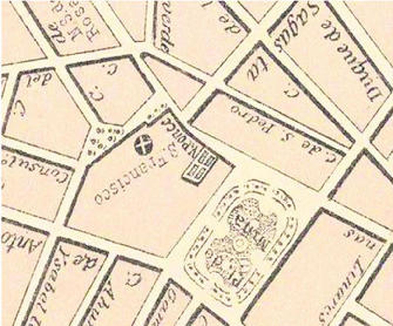 Sin embargo, cuando el drago se plantó hace unos 260 años, en la mitad del siglo XVIII, el árbol tenía espacio más que suficiente para crecer sin mayores problemas. Así se reflejan en los planos que de esta zona de la ciudad (hoy las plazas de San Francisco y Mina) aporta el arquitecto e historiador del urbanismo gaditano, Juan José Jiménez Mata.