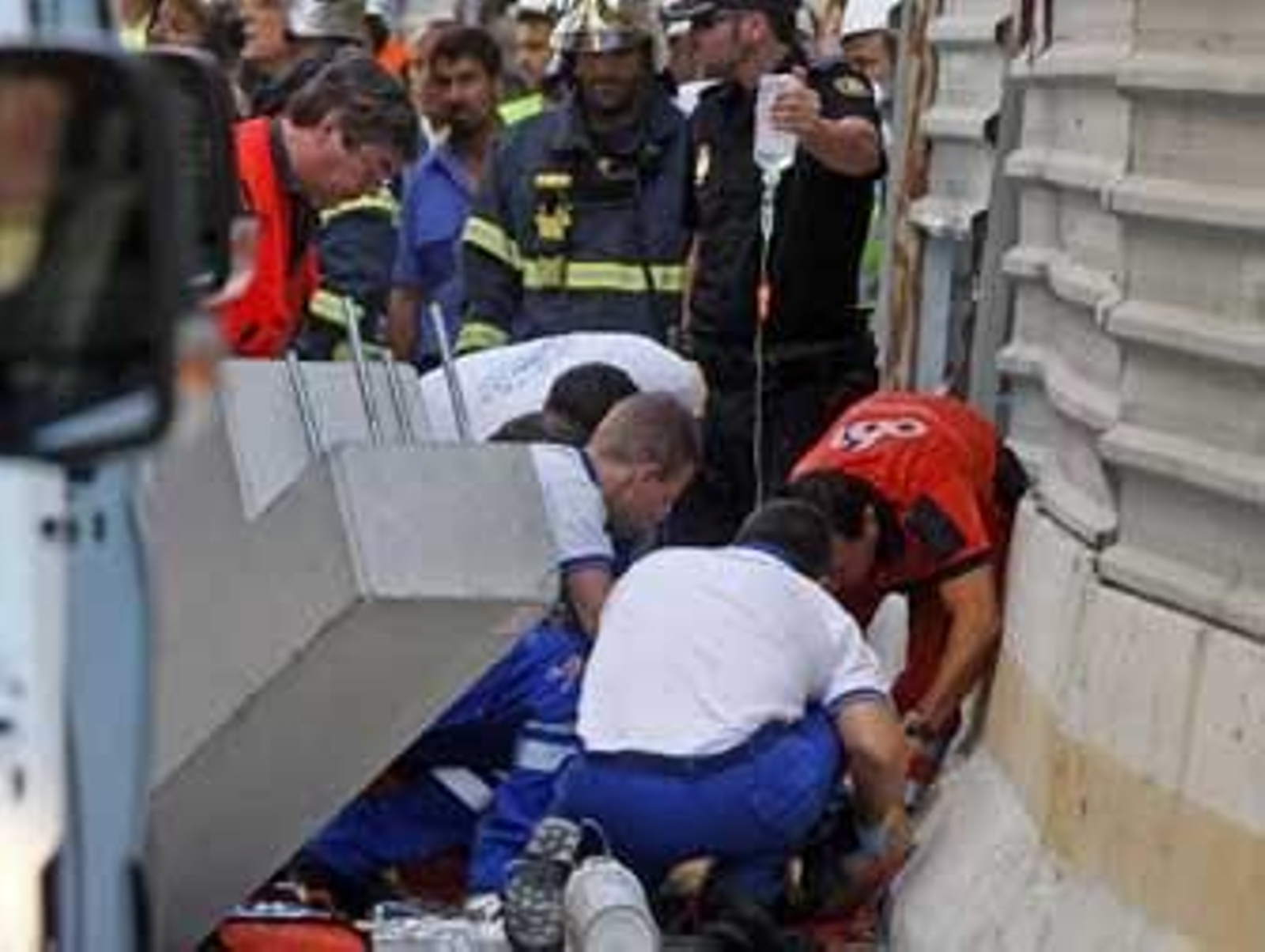 Los propios obreros de las obras de la Tribuna procedieron inmediatamente a la retirada de la pieza con los medios de la obra para realizar los primeros auxilios al herido.