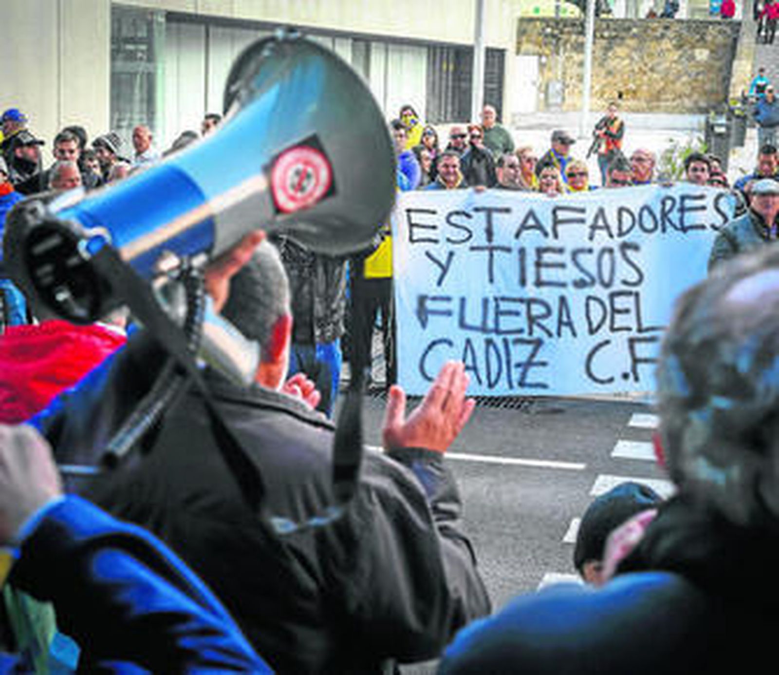 Dos pancartas adornaban la concentración, la dos con leyendas contundentes: Estafadores y tiesos, fuera del Cádiz y Gaucci vete ya. Nadie vio en el Carranza al italiano. No faltaron los cánticos en defensa del Cádiz y en contra de la cabeza visible de Sinergy en la capital gaditana. ¡Con el Cádiz no se juega! ¡El Cádiz no es un capricho! ¡Gaucci vete ya!...