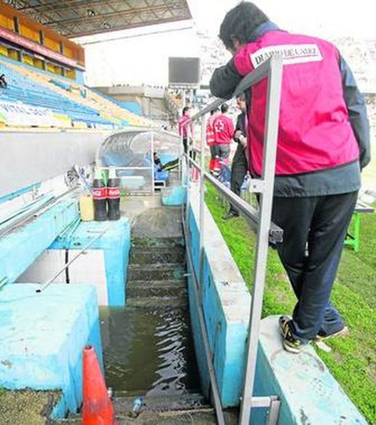 Punto y aparte es que la grada siga todavía en pie y que la imagen que se ofrece ante una televisión nacional sea de una estructura con parte de los asientos retirados, con una montaña de arena a pie de campo y con cerca de medio centenar de personas ocupándola a pesar de estar clausurada. Lo curioso es que entre esos invasores estaban Chico Linares y algunos de los descartados de la convocatoria de ayer.