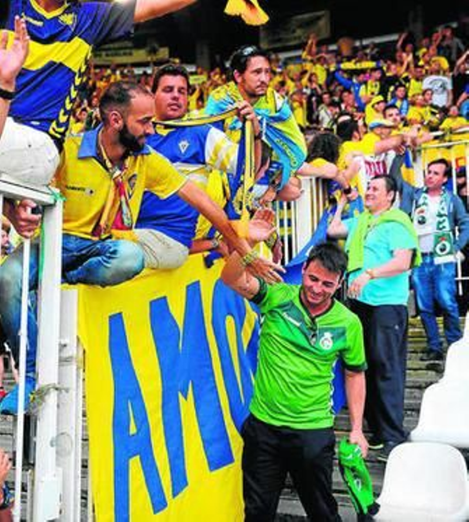 El momento más emotivo estaba reservado para después del pitido final. Ya con la final asegurada, la afición cadista, además de celebrar la clasificación con su equipo, dedicó cánticos de "¡Racing, Racing!" y "el Racing es de Primera" a la parroquia local, triste pero agradecida por el consuelo del ganador. Intercambio de aplausos en una comunión entre aficiones realzó la fiesta del fútbol y los cadistas llegados desde varios puntos de España regresaron felices a sus puntos de origen. No importaron los kilómetros.