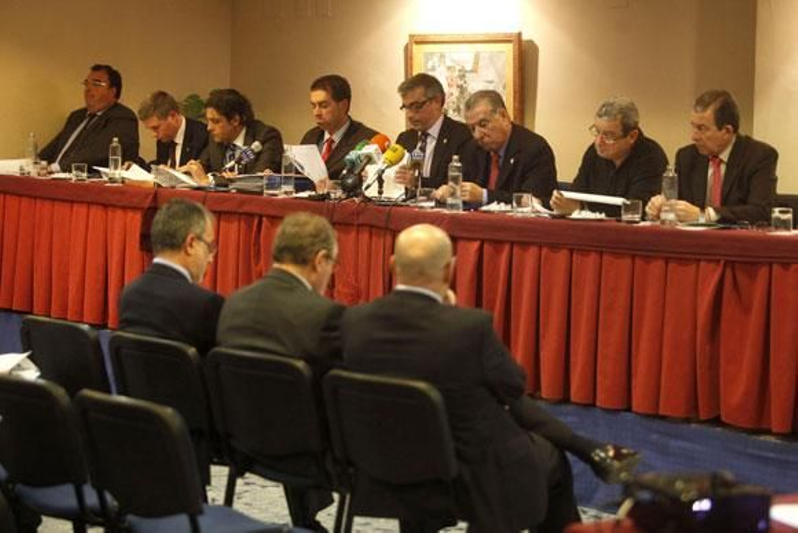El primer punto del orden del día sacó a la luz el balance económico de la pasada temporada, que concluyó con unas pérdidas de 1.365.000 euros. Pérdidas importantes -más aún tratándose de un club en Ley Concursal- pero, según explicó el vicepresidente primero de la entidad, Luis Sánchez Grimaldi, matizables, ya que al club se le adeudan actualmente unos 3,5 millones de euros. El Almería -tras la resolución del 'caso Chico', el Salamanca, el Valladolid, el Ayuntamiento de Cádiz o el Consorcio del Bicentenario son algunos de los deudores del conjunto amarillo. Según Sánchez Grimaldi, el control de gasto está limitado por los administradores y "lo que nos deben a nosotros es mucho más de lo que debemos desde el concurso para acá". El principal problema es que "no nos paga nadie" y por ello no se ha podido trabajar en la reducción de la deuda que mantiene al club en el concurso de acreedores.