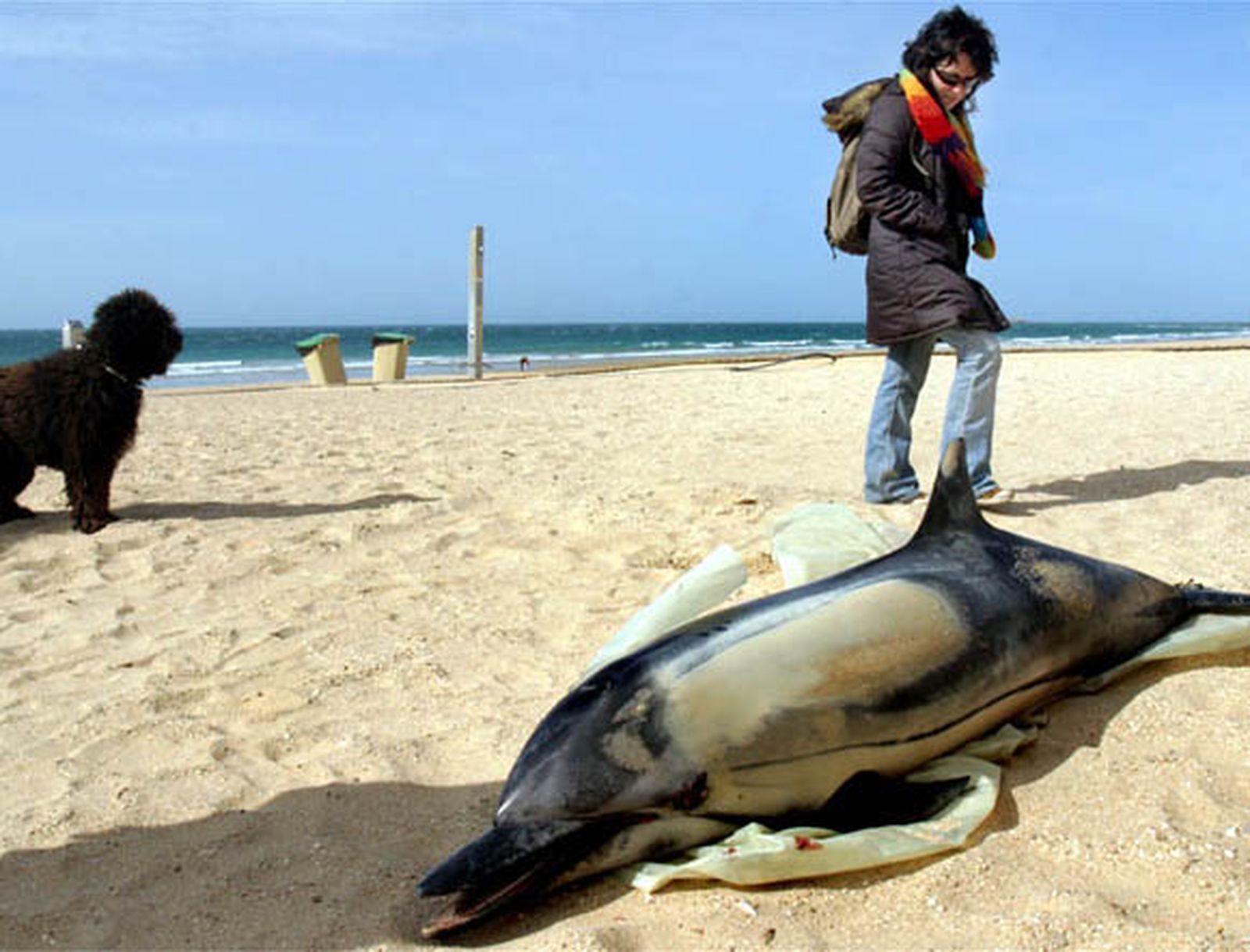 Aparece un delfín muerto frente al puesto de la Cruz Roja