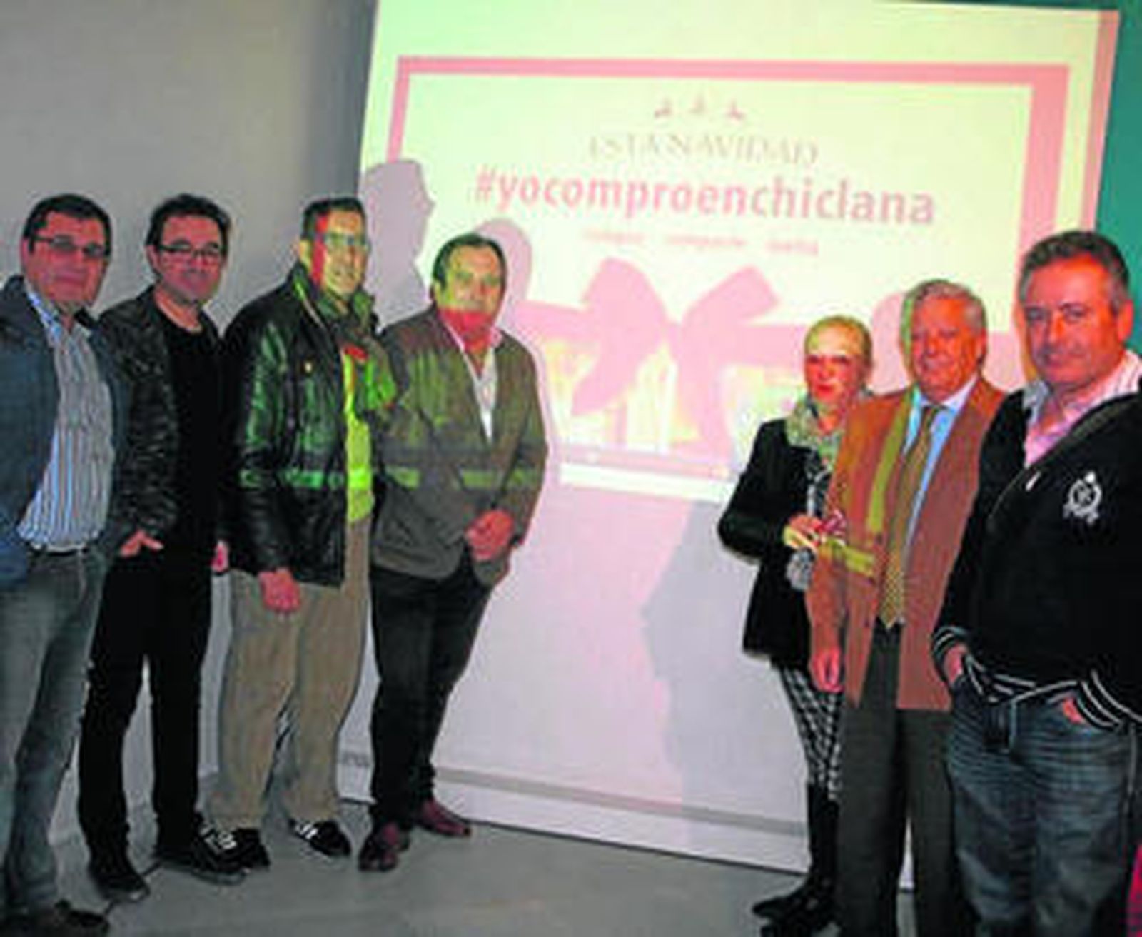 El alcalde, Ernesto Marín, junto al delegado municipal de Fomento, José Manuel Lechuga, y el creativo Andrés Parro, ha presentado a los comerciantes la campaña #YocomproenChiclana, que busca difundir la oferta comercial y hostelera de la localidad durante el periodo navideño.