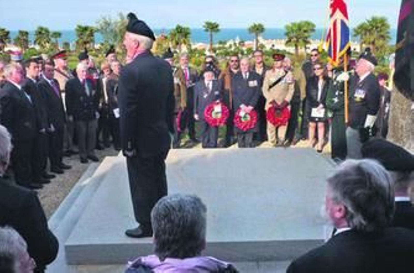 En este ambiente de solemnidad se llegó al momento más esperado, el homenaje a los caídos. La corona, portada por un infante de Marina y una marinero naturales de la localidad, fue depositada bajo el mástil por el Comandante General y el alcalde, a los que acompañaron representantes de los tres ejércitos que aquel 5 de marzo de 1811 se batieron en las arenas de La Barrosa. Una representación que ejercieron el Teniente Coronel Francoix Beaucournu, representante del Agregado de Defensa francés en España; Major G. Strain, Comandante del Regimiento de fusileros irlandeses, y el Teniente Coronel Antonio Jesús Benítez, del Regimiento de Artillería de Costa nº4 .