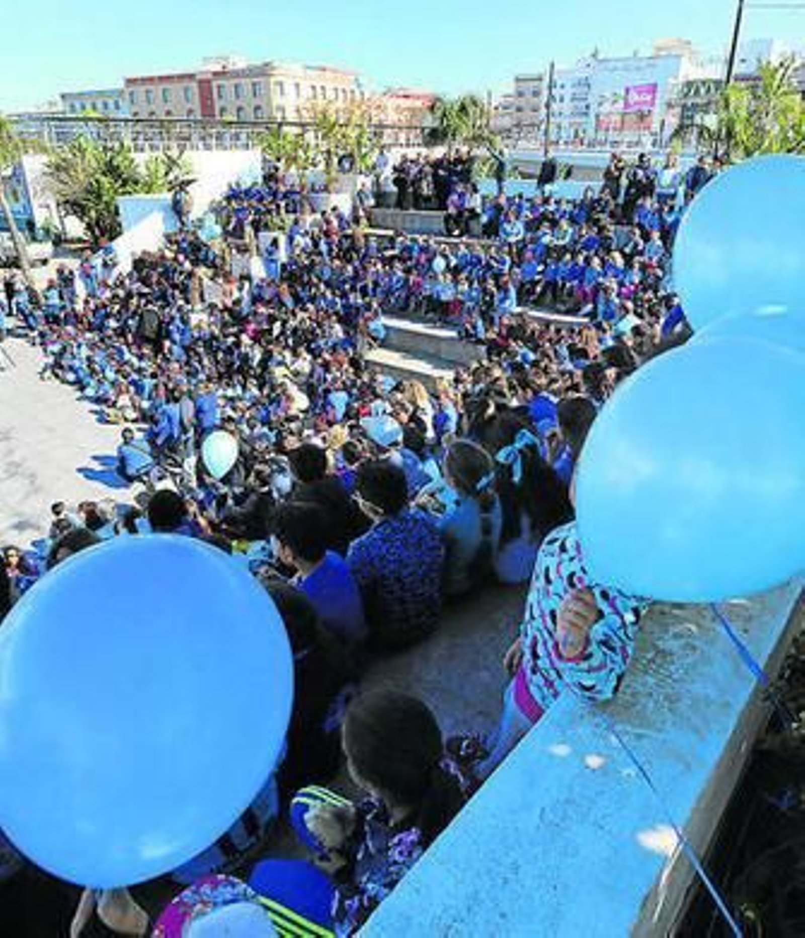 El anfiteatro de la Alameda del Río acogió ayer el acto con motivo del Día Mundial del Autismo con centenares de estudiantes, profesores y padres de centros educativos de Chiclana, entre ellos, los colegios Federico García Lorca, El Castillo, El Trovador, Isabel La Católica, Serafina Andrades y Tierno Galván.