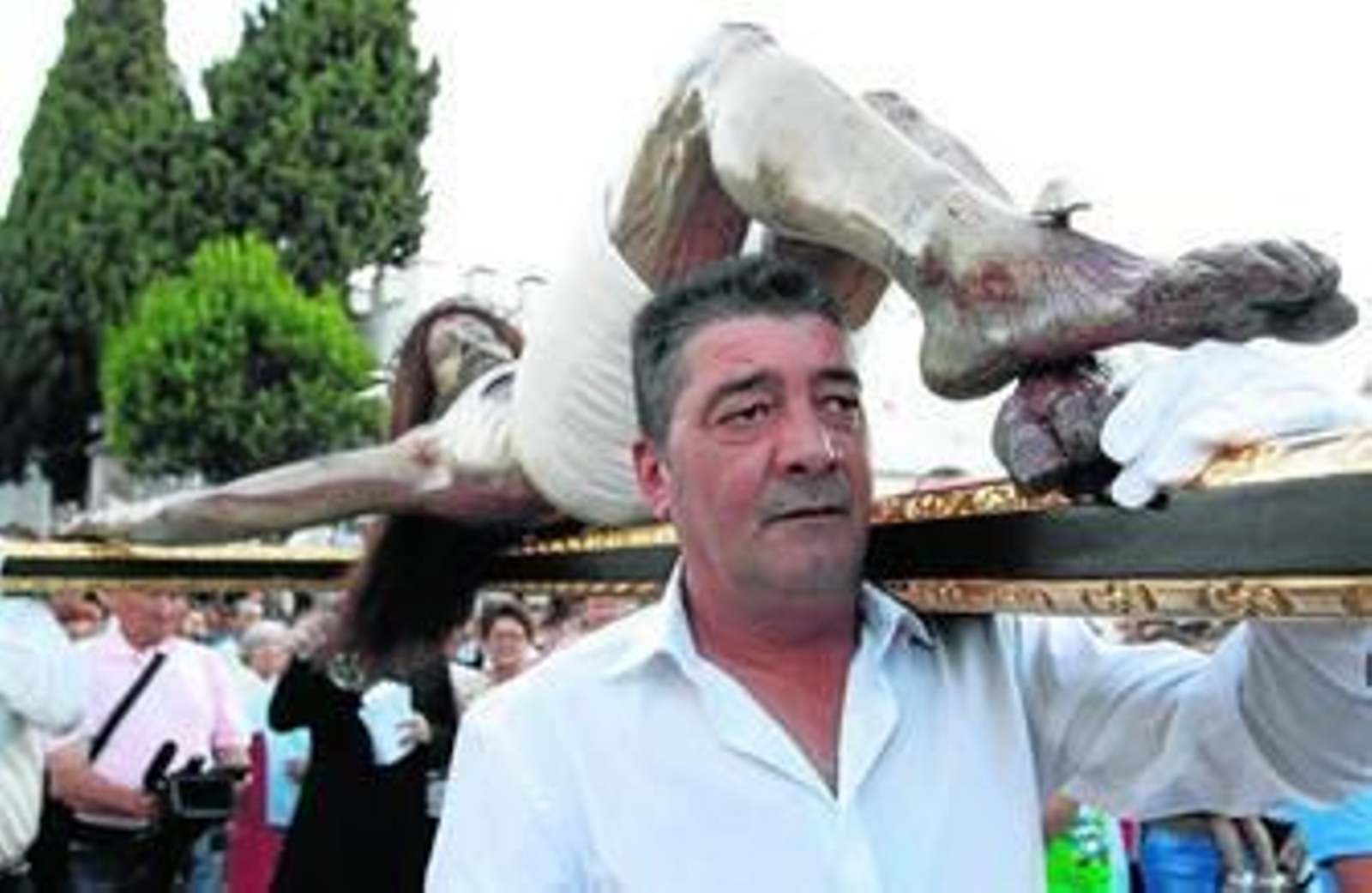 Fueron cientos de fieles los que arroparon al Santo Cristo durante su salida, a hombros de los costaleros de la Peña Nazarena, desde la pequeña capilla que lleva su nombre. En el templo, antes de iniciar el desfile, el párroco de San Juan Bautista, Francisco Aragón, dirigió unas palabras a los numerosos fieles que esperaban en el interior de la iglesia, una disertación en la que calificó el acto que estaban a punto de protagonizar como "una oración con la que poner en las manos de Dios las graves situaciones por las que pasan numerosas familias y una súplica para que interceda por los parados". "No se trata de un acto de simple superstición -continuó el padre Francisco Aragón- sino un acto de fe con el que queremos demandar la justicia necesaria para acabar con las graves desigualdades que motivan gran parte de los problemas actuales".