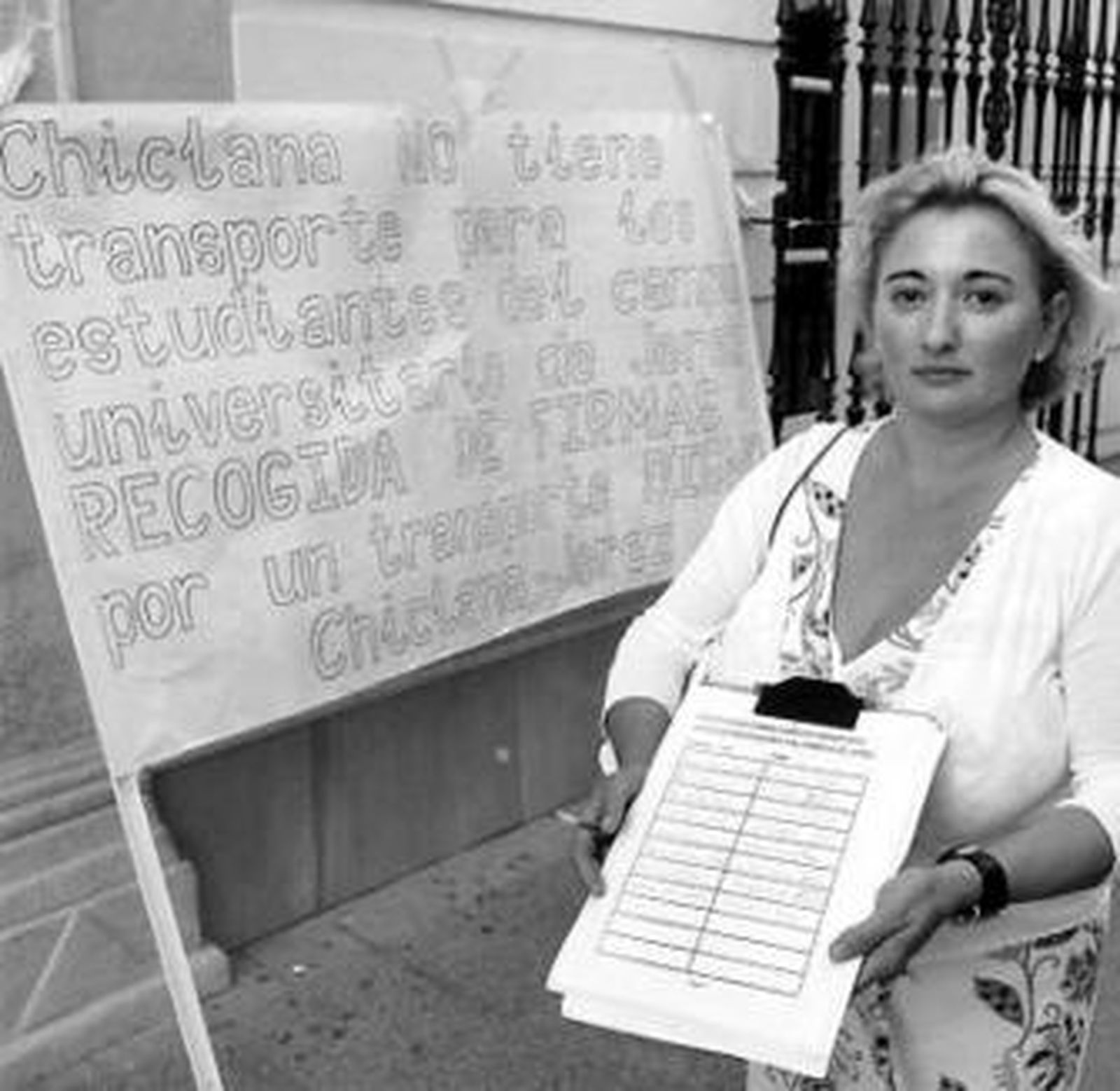 Desde el pasado mes de agosto, hace ya ocho meses, Dolores Acedo se sitúa cada mañana en la calle La Vega, arropada por su pancarta en la que explica su reclamación: un transporte público digno que una la localidad con el Campus Universitario de Jerez. Un tiempo y un esfuerzo que han dado sus frutos. Dolores ya ha recogido un total de 10.100 firmas que avalan y apoyan su propuesta. Por ello, y tras el envío de numerosos escritos y solicitar innumerables encuentros con las autoridades competentes en la materia, Dolores ha vuelto a pedir al alcalde de la localidad, Ernesto Marín, que la reciba para poder explicarle en persona, y de forma oficial, la situación. "Es necesario que esta petición se lleve a Pleno, se consiga el consenso de todas las fuerzas políticas, para hacer una petición formal a la Junta", ha asegurado, añadiendo que "los políticos deben concienciarse y no hacer oídos sordos a lo que piden más de 10.100 ciudadanos".