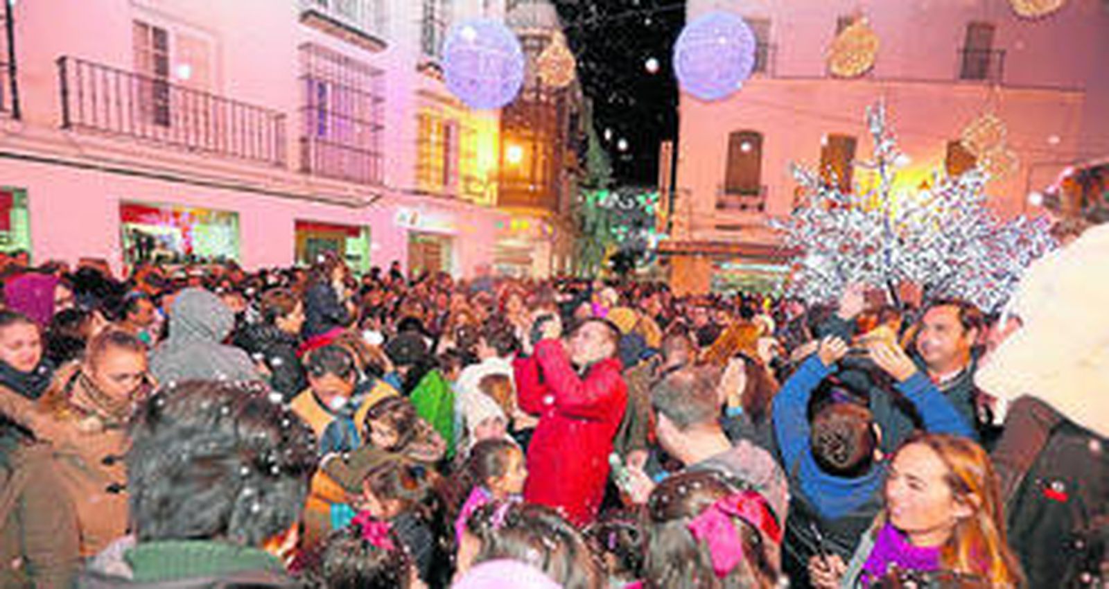 La iniciativa Chiclana Nevada promovida por el Ayuntamiento repitió el éxito del pasado año con la presencia de cientos de personas alrededor de la Casa Consistorial que disfrutaron de este esperado evento navideño, que con seguridad es el que más público convoca en esta fechas festivas después de la Cabalgata de los Reyes Magos.