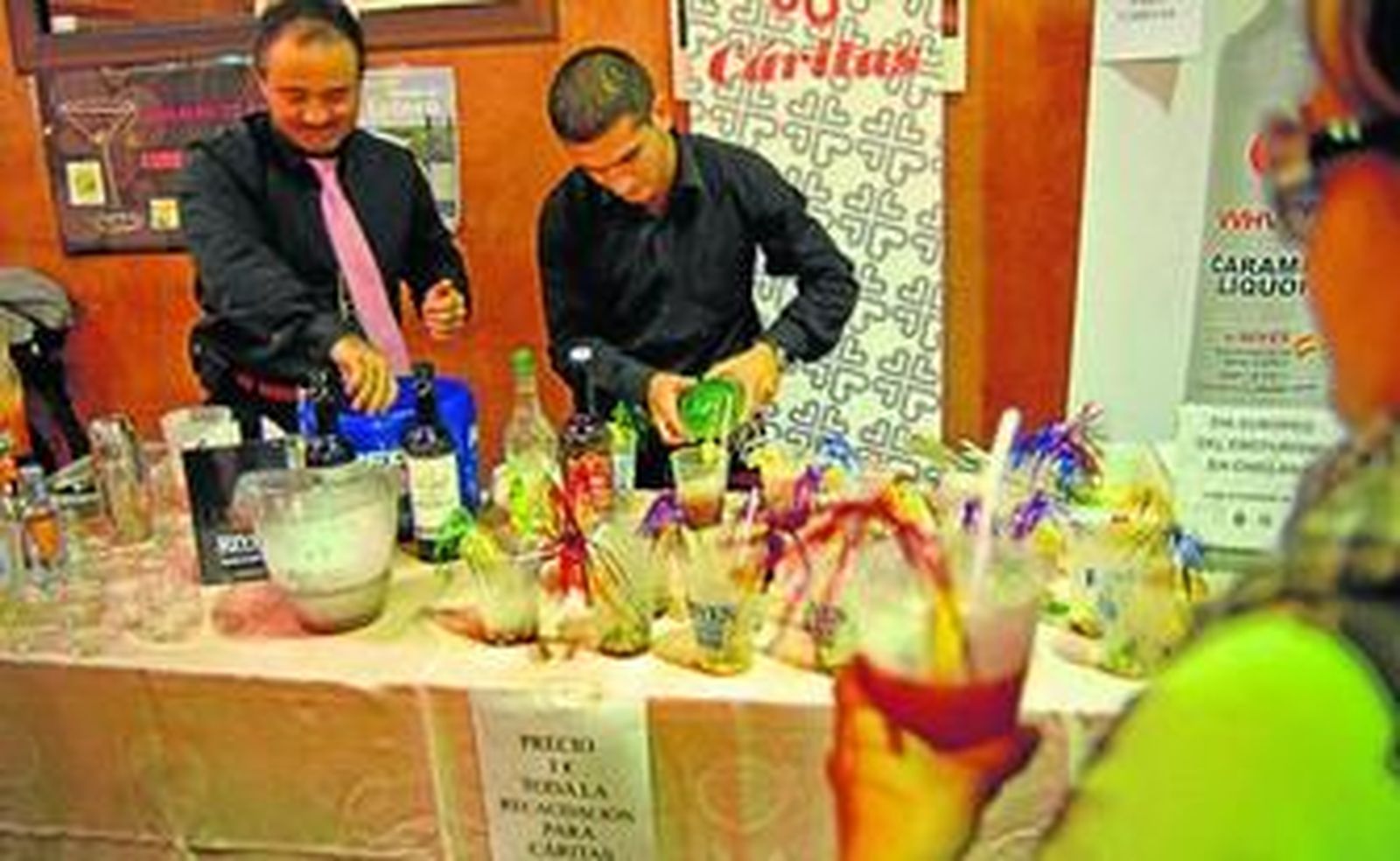 Cócteles realizados con vinos de la localidad y brandies, cuya recaudación irá destinada de manera íntegra a Cáritas Arciprestal de Chiclana, fueron elaborados ayer en el Mercado Central por Juan Carlos Morales, presidente de la Asociación de Barman de la provincia de Cádiz (del restaurante 'El Farito'), con el objeto de dar conocer los caldos chiclaneros tanto a chiclaneros como a visitante.