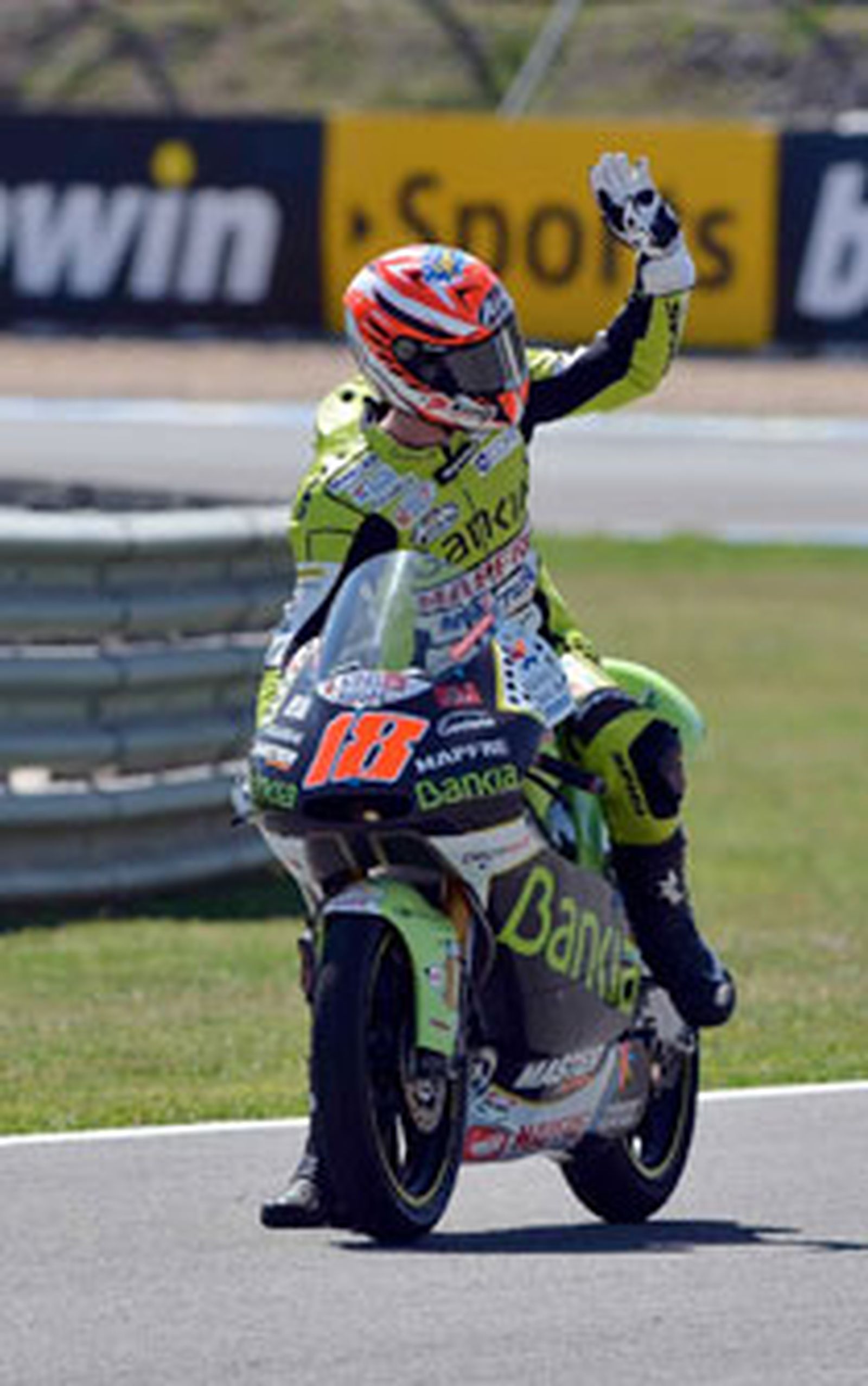 Hasta siete pilotos coparon las doce primeras posiciones pues a la segunda plaza de «Nico» se unieron la tercera y cuarta posición de Héctor Faubel (Aprilia), su propio compañero de escudería, y Efrén Vázquez (Derbi).