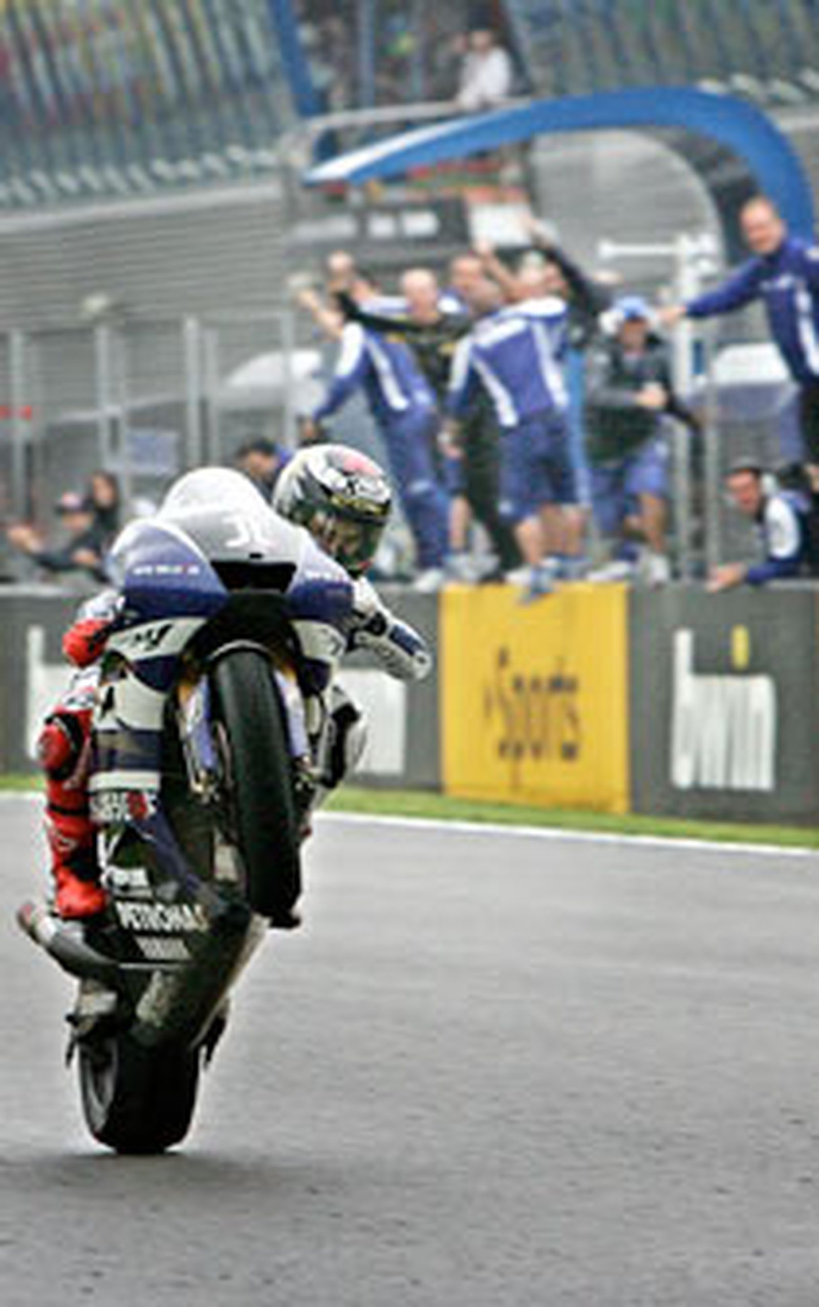 El mallorquín se impone en una carrera plagada de caídas por el asfalto mojado entre las que destaca la de Rossi, que derriba a Stoner