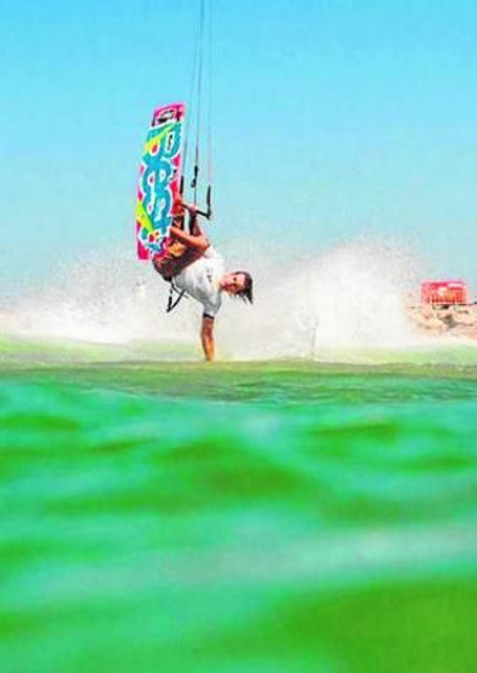 Con un viento de levante más intenso, gracias sobre todo al cambio de zona -de la playa de Valdevaqueros se pasó a la zona de Balneario- la tarifeña pudo demostrar todo su potencial con grandes trucos y espectaculares saltos. Fue la principal atracción del estreno.