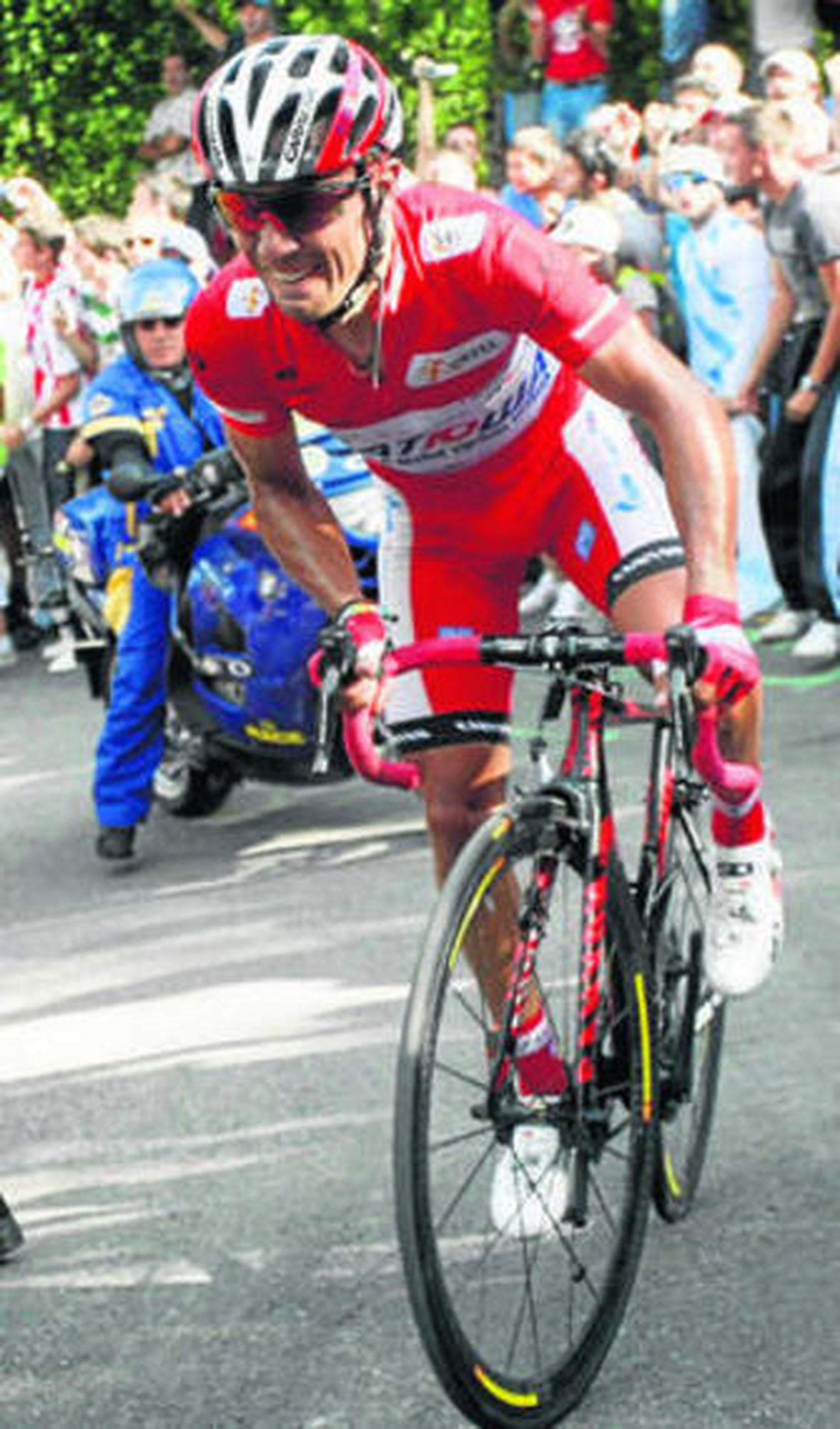 La mutilada subida, no obstante, hizo retorcerse a los gallos de la carrera. A unos más que otros, claro. Cuando parecía que Contador iba a volver a saborear las mieles del triunfo, vio de reojo el maillot rojo del jefe de la Vuelta. Mala cosa, porque verlo y ver cómo se le escapaba como una bala fue todo uno. Joaquim en estado puro. Un líder de verdad. No estaba muerto, estaba "de parranda".
