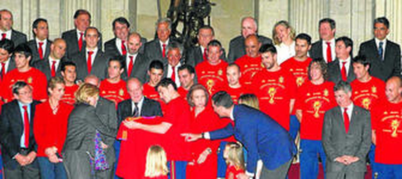 La Familia Real, encabezada por el Rey, y el presidente del Gobierno, José Luis Rodríguez Zapatero, se rindieron ayer a la selección española de fútbol y destacaron que su trabajo de equipo proyecta la mejor imagen de España hacia el exterior.