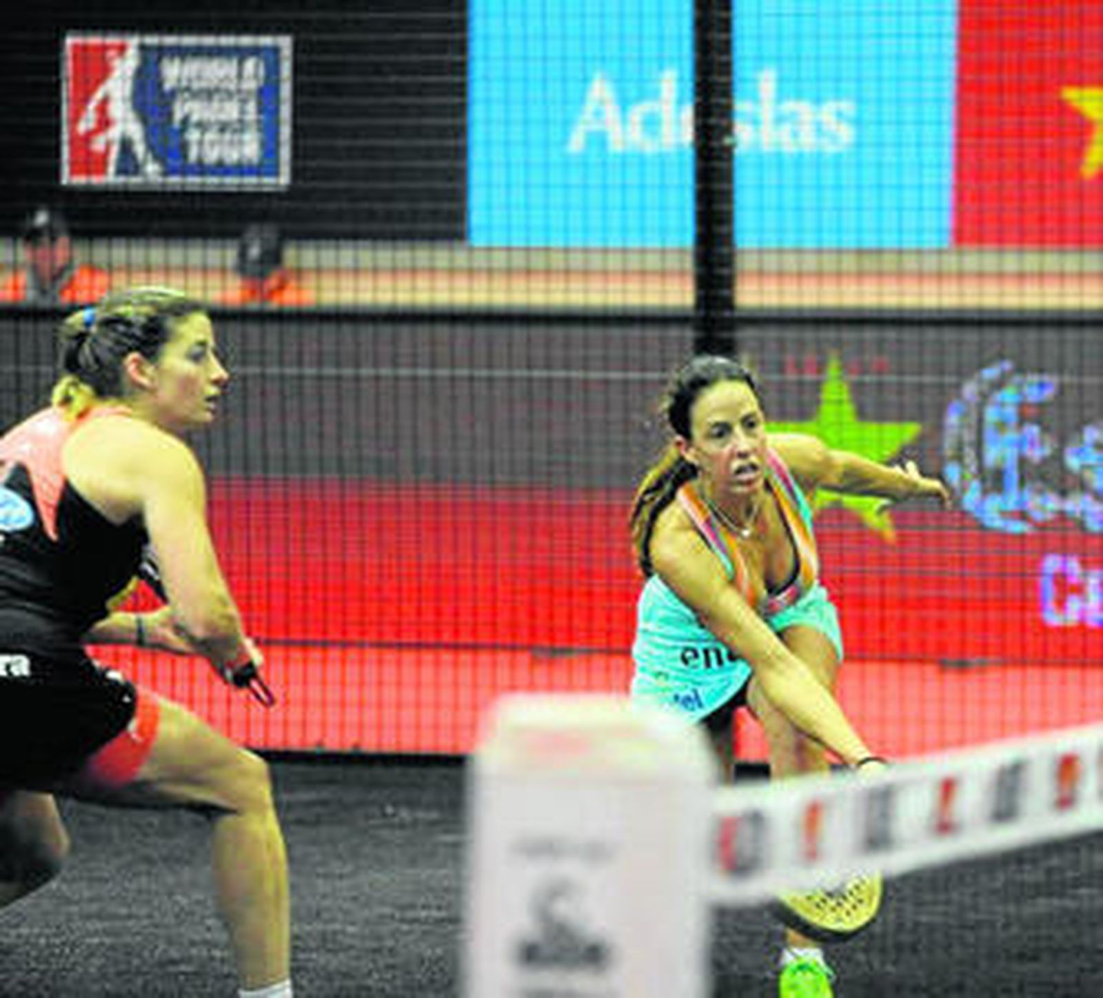 Salazar y Marrero acabaron llevándose el gato el agua a pesar de que hubo momentos en los que dio la impresión de que iban a recibir una auténtica paliza. El dúo fraternal, vencedor en el torneo anterior de Barcelona y cabeza de serie número 1 en La Isla gracias a que sus componentes encabezan al alimón el ranking individual del World Padel Tour, saltó a la cancha como si un huracán estuviera asolando la pista central instalada en el pabellón de Bahía Sur. Mapi y Majo aquilataron en un visto y no visto una ventaja más que considerable de 4-0 en el primer set. Pero lo más relevante no era el marcador sino la aplastante superioridad de su juego arrollador frente a unas rivales timoratas y que parecían acomplejadas, fallando una y otra vez hasta los golpes menos complicados. Tres puntos a favor en cuatro juegos era un bagaje horripilante.