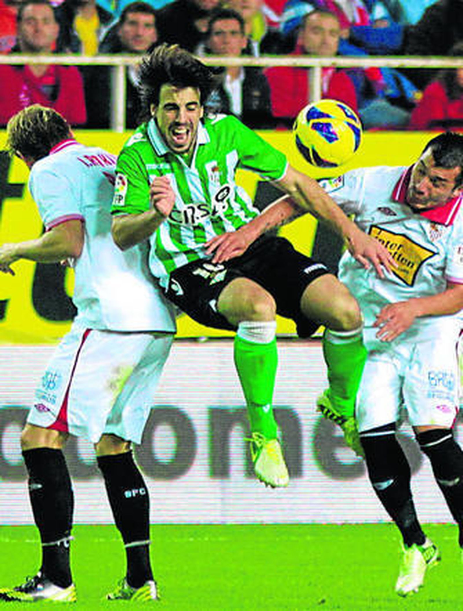 Los verdiblancos no consiguieron sobreponerse y fue el Sevilla el que llevó el peligro a la meta de Adrián, hasta que en el minuto 32, un remate de cabeza de Negredo golpeó en el larguero y Reyes aprovechó el rechace para marcar el tercero. Diez minutos después, Reyes puso un centro desde la banda izquierda que Fazio convirtió en el cuarto de la noche.