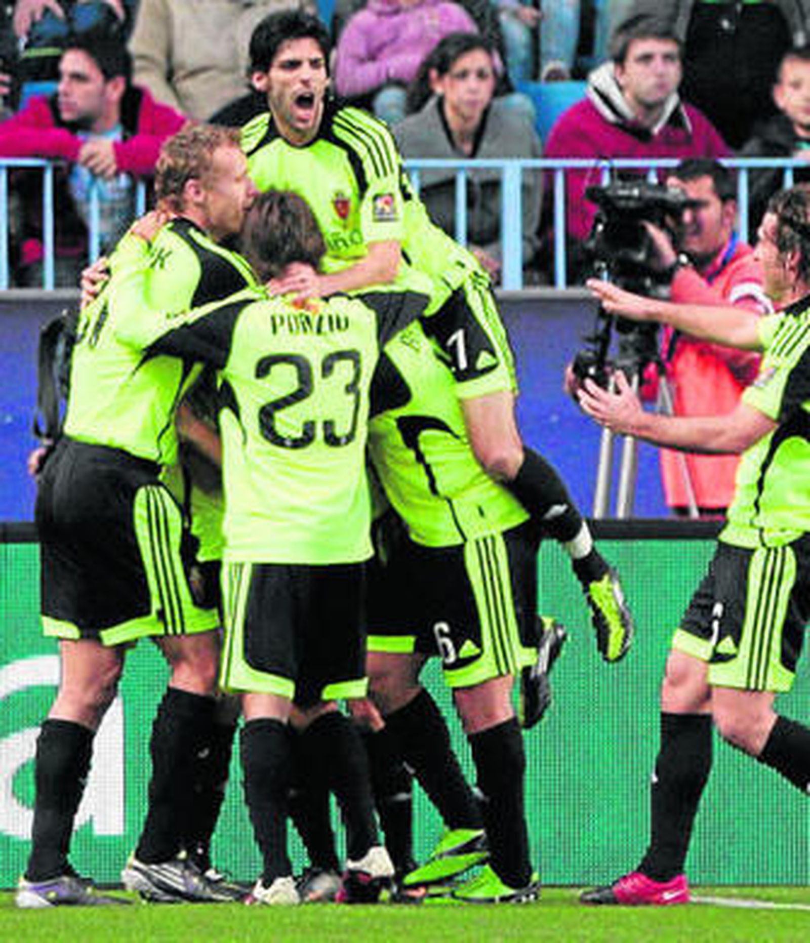 Cuando parecía que el empate iba a ser el resultado final, el delantero Sinama Pongolle, que había salido por Braulio, se fabricó una jugada y con su pierna izquierda, en lanzamiento raso, dio el triunfo al equipo aragonés en el minuto 84.