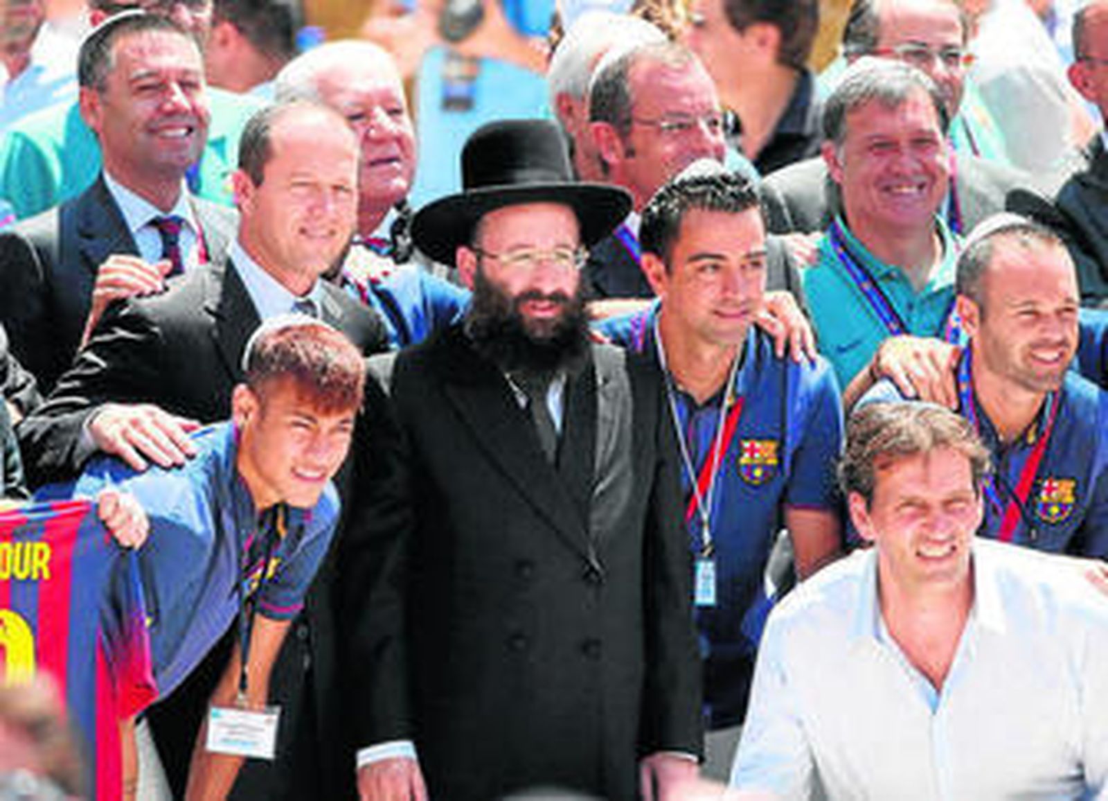 El presidente del Barcelona, Sandro Rosell, dijo sentirse "orgulloso" de que el club español fuera "una de esas cosas que ambas comunidades tienen en común". "Según nos han contado, somos el equipo extranjero más popular tanto en Israel como en Palestina", advirtió. Antes de la recepción con la autoridades, el Barcelona visitó el Muro de las Lamentaciones, donde, por respeto a los lugares santos, los jugadores llegaron tocados con un kippa blanco y cumplieron con la costumbre de meter un papel con un deseo personal entre las viejas piedras del muro. Por la tarde, realizaron un entrenamiento ante 14.000 jóvenes judíos y árabes en el estadio Bloomfield de Tel Aviv. Antes, junto a Netanyahu, habían visitado otro recinto deportivo donde se encontraron con niños con cáncer.
