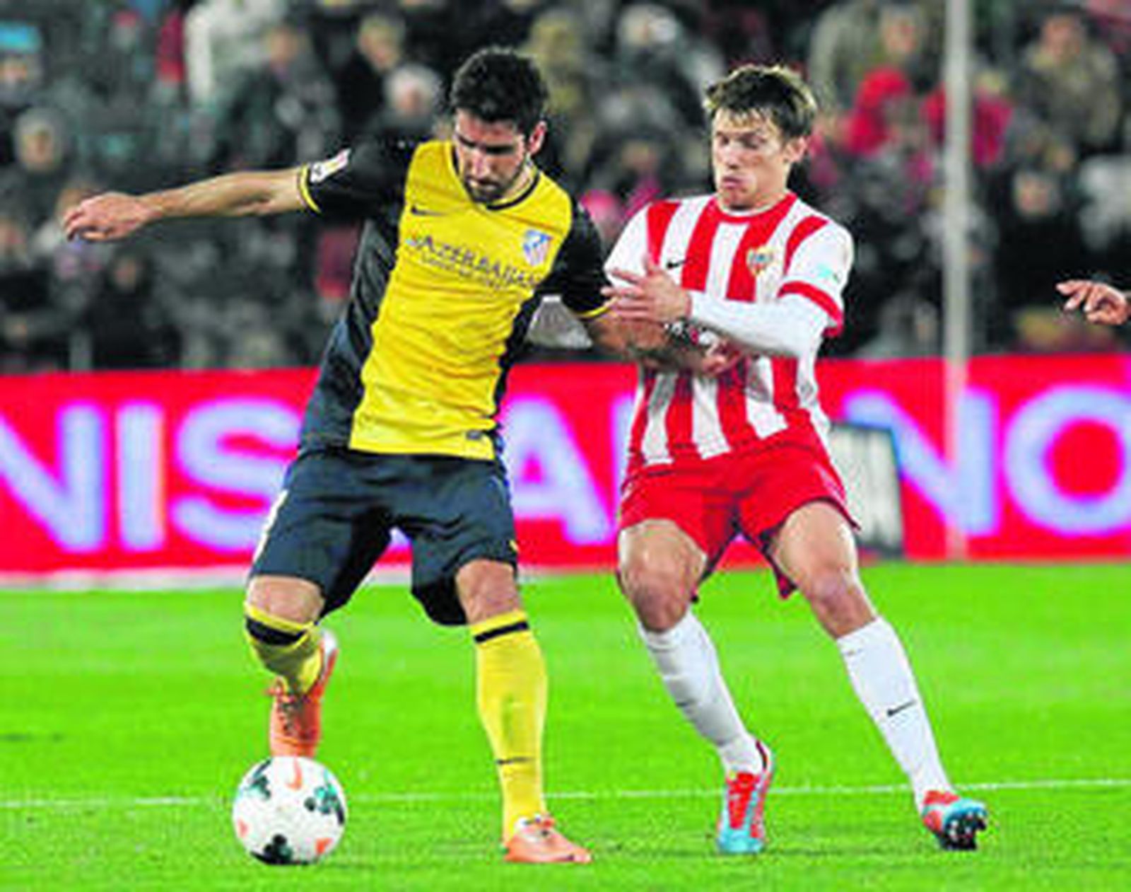 Dos goles del medio del Almería en el tramo final, uno de ellos de penalti con Gabi de guardameta, derrotan a los de Simeone, que pierden el liderato