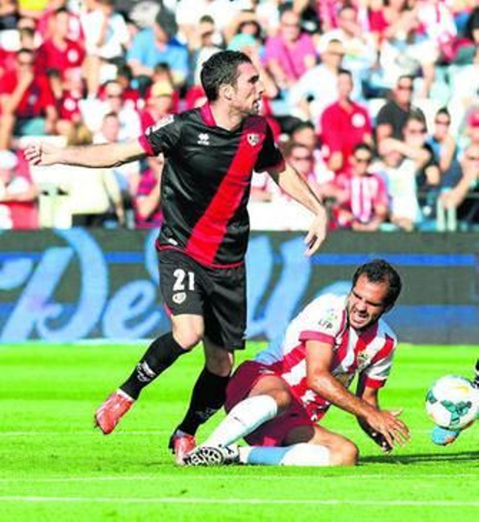 El Rayo Vallecano hunde al Almería en la clasificación y pone en peligro la continuidad del técnico Francisco Rodríguez tras vencer en el estadio de los Juegos Mediterráneos. El conjunto madrileño, que jugó casi media hora con un futbolista menos por la expulsión de Saúl Ñíguez, se llevó con toda justicia la victoria por manejar bien los tiempos, exponiendo un fútbol de control ante un Almería que fue el peor de la temporada y que a la falta de posesión unió la de la intensidad.