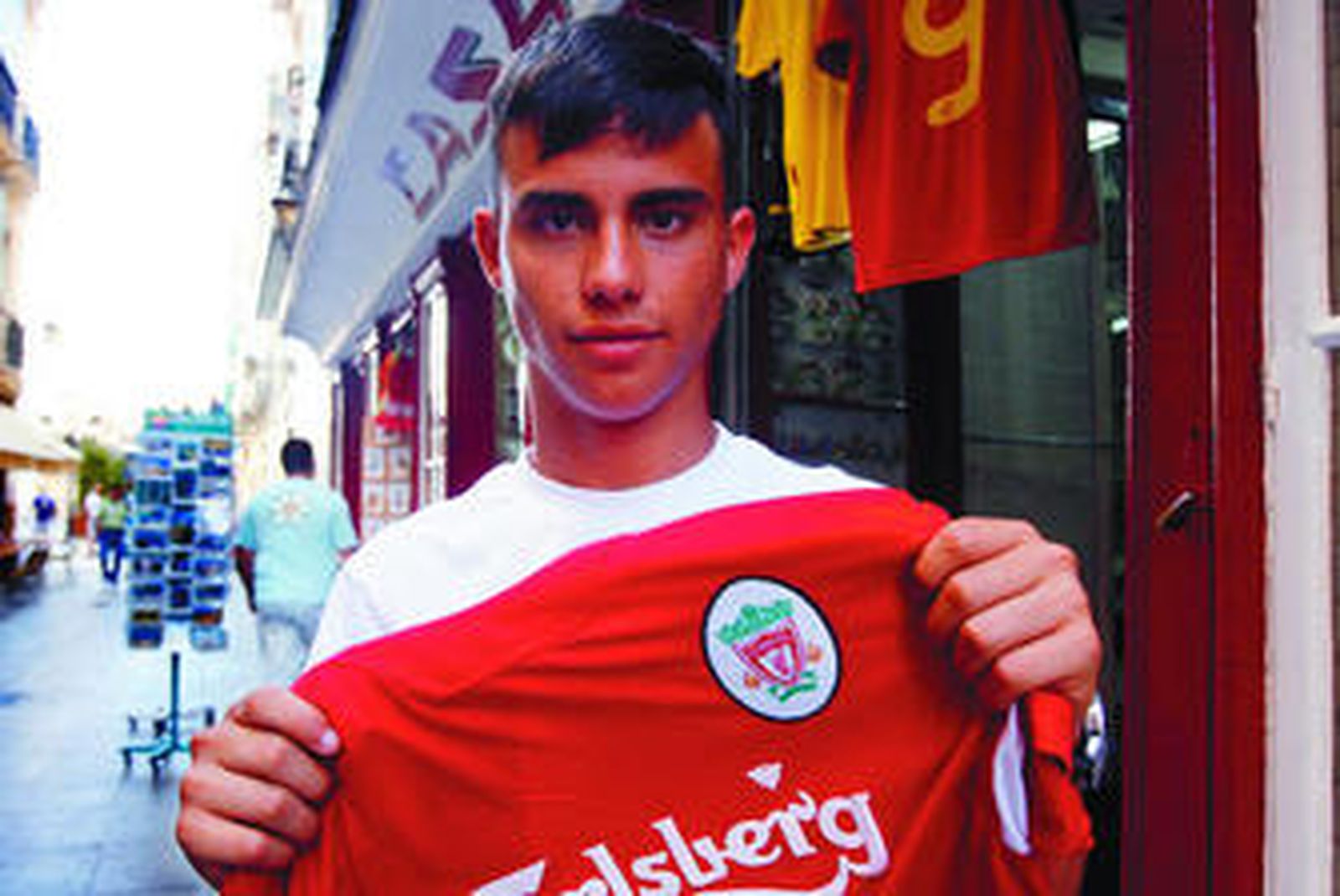 El jugador estuvo ayer en la redacción de este periódico, donde recibió la felicitación del personal y posó para el recuerdo al tratarse del primer jugador gaditano que es traspasado al fútbol inglés.