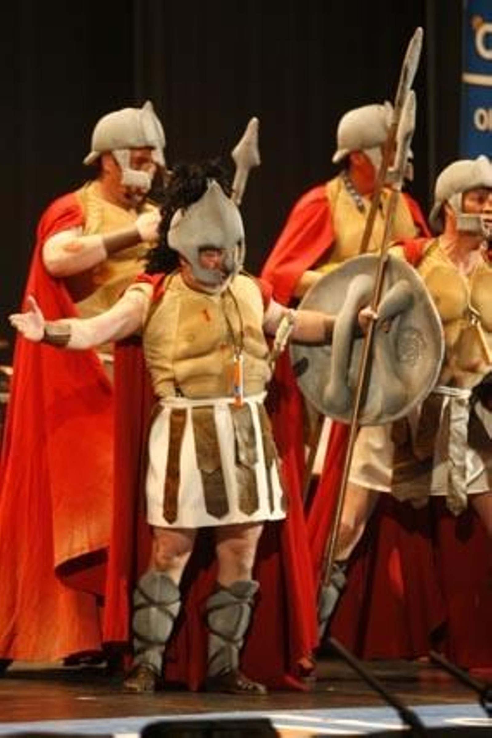 Muy simpático el tipo de estos espartanos que llegan desde San Fernando. Las letras no consiguen convencer del todo, aunque el público les anima y se divierte con sus pasacalles. Silencio tras los cuplés y durante el popurrit, mala cosa para una chirigota. Al menos ellos le ponen voluntad y seguro que se divertirán mucho en a calle. Nota:*
