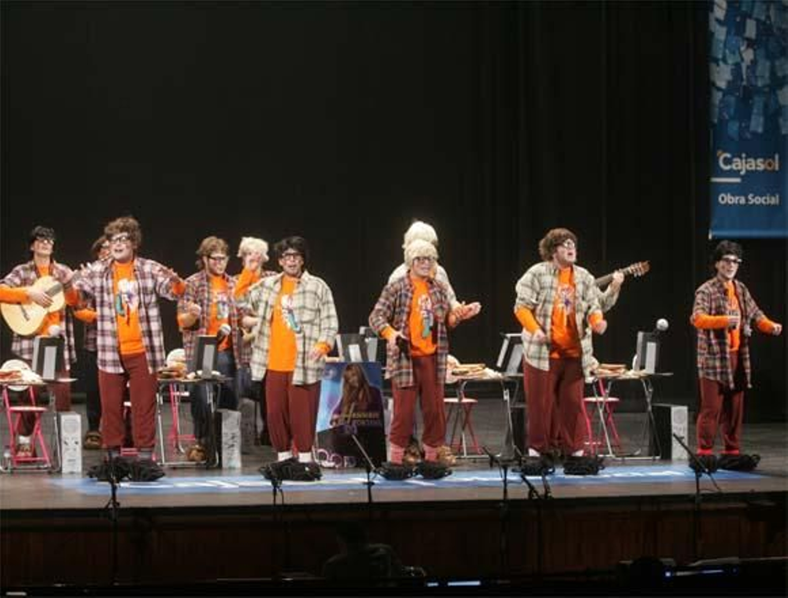 Simpático tipo el de esta chirigota, de ´frikis´enganchados a Internet... y al Carnaval. Sólo se despegan del ordenador para cantar en el Falla. En el primer pasodoble dedican un piropo a Cádiz y en segundo cuentan la historia de un hombre que se despide de sus hijos. Normalitos de letra y flojitos de afinación. Primer cuplé a los cambios del último año, regular, mejor el estribillo. Se venden fragmentos de luna en el segundo, en la línea del anterior. No consigue hacer reir el popurrí, aunque tiene algunos puntos salvables... Al menos le echan cara y ellos se divierten. En la calle lo pasarán bien, pero para progresar en el concurso le faltan letras y afinación. Aún así, son jóvenes y tienen futuro para seguir mejorando.
