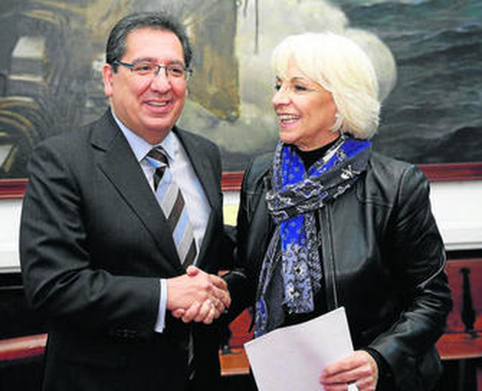 Antonio Pulido, presidente de la Fundación Cajasol, y Teófila Martínez, alcaldesa de Cádiz, firmaron la renovación del acuerdo de colaboración por el que ambas entidades seguirán trabajando en el fomento económico y laboral del Carnaval, en la producción de vestuario, gastos de desplazamiento, maquillaje, instrumentos o utensilios que utilizan las agrupaciones en sus actuaciones y del que se benefician modistos, carpinteros, maquilladores y demás trabajadores relacionados con la fiesta gaditana.