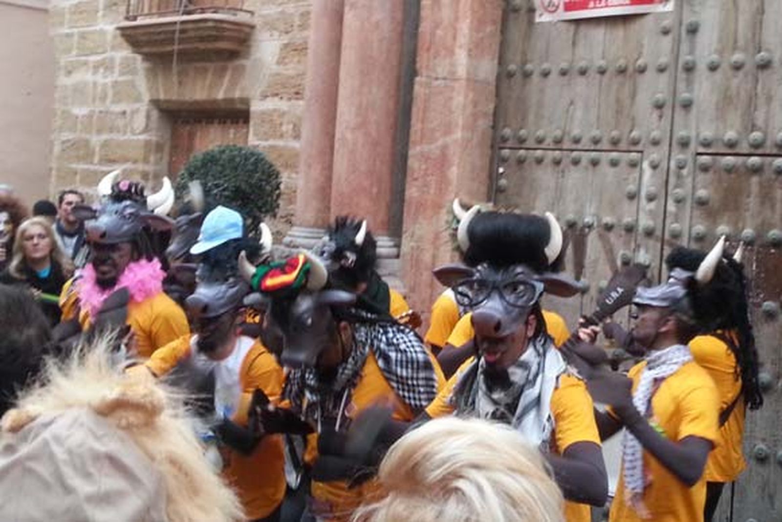 Este Domingo de Coros se estrenó en las calles de Cádiz la chirigota sevillana 'Los indignaos con Ñ, Unión del Ñu Acojonao'. Tipo surrealista de ñús indignados, algo así como "ñuflautas". con letras entre humorísticas y reivindicativas. Un grupo joven, con un tipo muy elaborado que se ve venir de lejos y que consiguió reunir a un buen grupo de aficionados en la puerta de la Casa del Almirante, en el barrio de El Pópulo. Al ser de Sevilla limitarán sus actuaciones al fin de semana, aunque también mostrarán su repertorio en su tierra, comenzando por Gines el próximo 17 de febrero. Pueden seguir sus pasos en la cuenta de twitter @indignaoss.