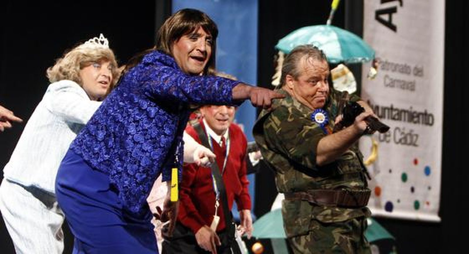 Letra. Juan Rivero Torrejón y Ramón López Rodríguez. Música. Raul Mª Cabrera Fernández y Rafael Fernández Reyes. Dirección. Fernando Morales Romero, ‘Shuster’. El tipo. Miembros de la Casa Real. Las coplas. Familia real que se presenta pues a la manera del Rey, gran caída de boca. El monarca, eso sí, vestido de cacería. Presentación muy loca. Un elefante por el patio de butacas, el Rey roando... Ojú qué locura. Más serio, lo malo es que lo dicen serio, no esperaban que “detrás de una barba se escondiera tanta maldad”. Crítica a Rajoy con un pasodoble mecido donde rematan que entrarían en el Congreso para ponerlo en la calle. Otra letra política, a Mas le hablan de corrupción y le recuerdan que si su tierra es lo que es , será por el esfuerzo de “andaluces y extremeños”. No iba del todo mal pero al final le meten caña con la liga del fútbol. A trivializar se ha dicho.