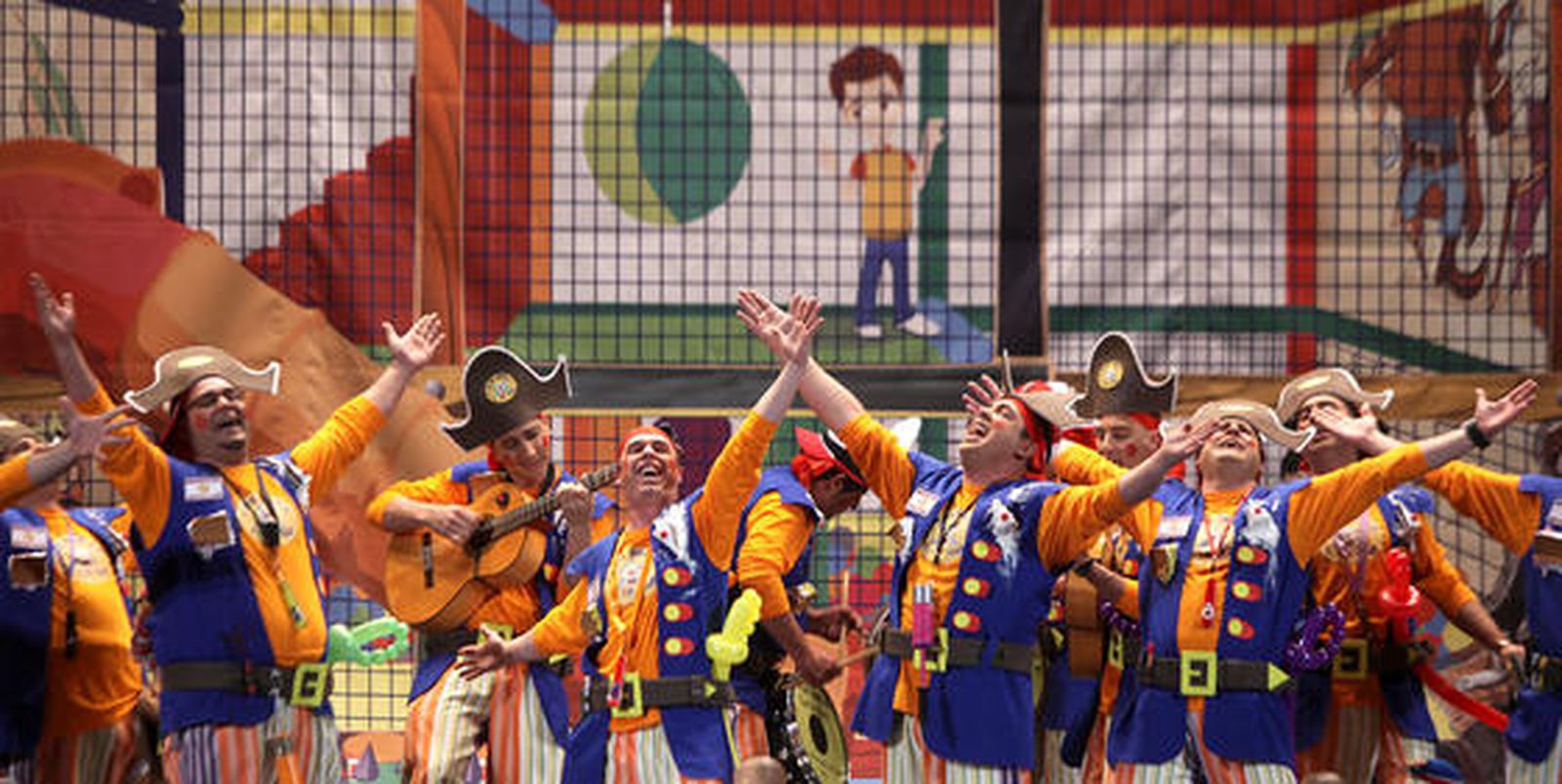 Letra: David Olmedo Cordero. Música: Guillermo del Valle Bueno. Dirección: Juan José Panes Montoya. El tipo: Animadores de un parque infantil disfrazados de piratas. Las coplas: Cumpleaños y demás fiestas con chiquillos traen de cabeza a estos animadores que realizan una presentación alegre pero sin demasiados golpes. Primera letra a una mujer que se busca la vida ya que su marido no tiene trabajo, con una primera parte simpática y con un remate serio. En la siguiente, bastante mejor hecha, cambian el pañuelo de pirata por el pañuelo rosa y proyectando el vídeo que muestra a los empleados de Residencia encargados de tratar a las mujeres con cáncer de pecho. Cuplecito donde se toman a coña las declaraciones del duquesito que se quiere disculpar y contratar a los parados: "Cayetano no te enfades, no se te puede gastar una broma", rematan. Vacilan de tablet en la segunda letra pero un chiquillo le da coba. No están malotes. Estribillo pegadizo: "¡niño, qué tranquilo está tu padre". Popurrí que mezcla juegos visuales con alguno que otro de repertorio.