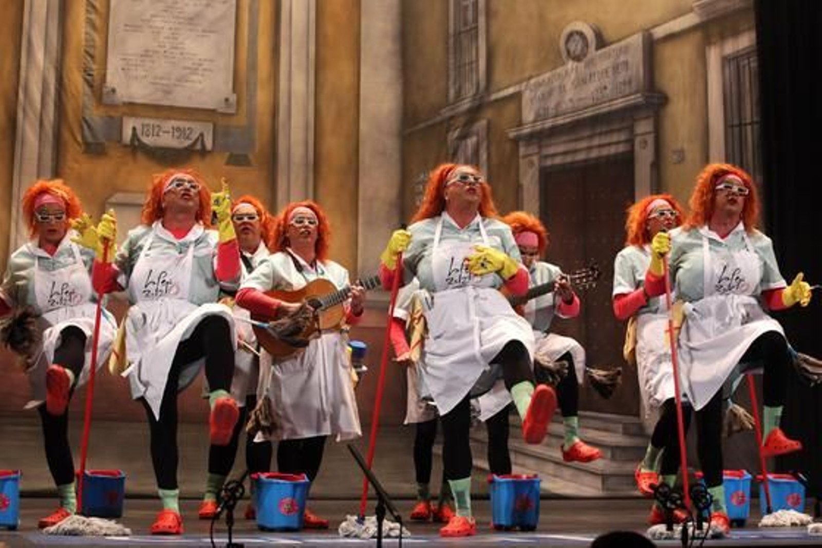 Letra: José Luis García Cossío 'Selu'. Música: José Luis García Cossío 'Selu'. Dirección: José Luis García Cossío 'Selu'. El tipo: Limpiadoras del Oratorio San Felipe. Las coplas: Voz ronca, su cigarrito inconsumible, su mala uva... Que este hombre clava los tipos no es ninguna novedad, pero sí un nuevo gustazo observar cada detalle, cada frase, cada tic metido al tipo. "Ni mijita", "esto pa ti y pa mí"... Las coletillas se van intercalando en cuplés y pasodobles para enriquecerlos. Presentación con mucho ánge. "Le ha metío un flete (al Oratorio) que se puede comer en el suelo", dicen orgullosas advirtiendo que sí, que al Oratorio vendrá todo el mundo "pero no lo pisa nadie hasta que no se seque el suelo". Porque ahora mucho Doce, pero en Cádiz de toda la vida "el doce es el que pee y tose". Primer pasodoble marca de la casa, con mucha ironía hablan de los "sueldazos" de las limpiadoras y de la agenda de la alcaldesa "no se pierde una la gachí". Inventan rumores con arte y pegan un toquetazo al dormitorio de Teófila, "a ver si encuentra polvo". La Casa Real se lleva el siguiente cotilleo de la Pepi en forma de pasodoble. Que si le daría miedo trabajar allí porque tiene que guardar "el monedero cada vez que entra Urdangarín" o lo jarta que está la reina que un día de estos le pone "la maleta y la corona en la puerta" al rey hasta arribita el (¿o de?) soberano. Cuplés al encantador de perros a cuyo entierro van a ir "cuatro gatos". Bastante regular el segundo a su suegra de la que se quiere deshacer. Estribillo pegadizo "Cuidaito con la Pepi, no te vayas a resbalar". El popurrí no está al nivel del resto del repertorio. Aún así tiene dos o tres toquetazos, como la cuarteta de Salvador, los cubo que se mueven o la movida urdangarin y la urdangarana .