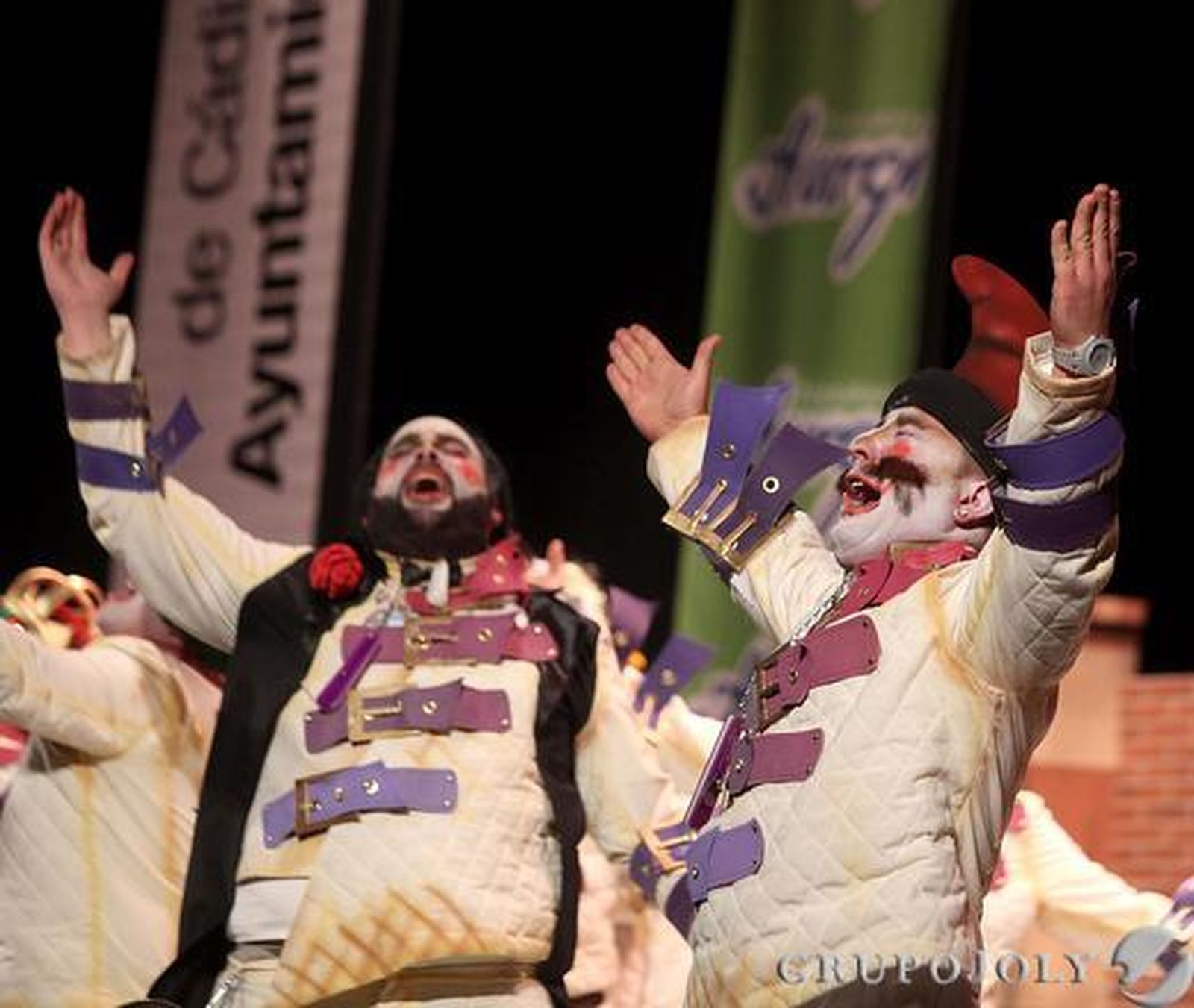 . Letra, Música y Dirección: José Miguel Choza. Las coplas: Actualizan su presentación cambiando personajes. Muy metidos en el papel, entonan un pasodoble a una Andalucía que también enloquece porque no es entendida por el norte. Cuando hablo, habla Pemán, Alberti, Lorca, Machado... y muchos más andaluces que levantaron España, cantan en una buena letra que busca y busca el final. Otra letra para la comparsa, "la que por una ovación se viste de ramera". Porque, dicen ellos, que la chirigota no cambian a sus componentes por el destello de la gloria. (Ojalá que sea verdad). Con su fórmula de mezclar dos temas en el cuplé , hablan del Rey y su mala cara. Cortocircuito. Habla el Papa. Remate de confusión entre los dos. Mejor el segundo con Walt Disney congelado. Cortocircuito. La chirigota del Love. Y con final donde mejor se congelan hasta que el Love no saque más chirigotas. El popurrí no me convence pero ellos me han gustado más.