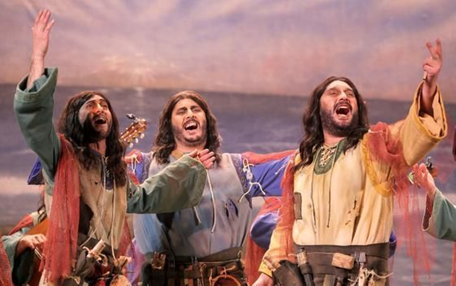 Letra: Antonio Rivas. Música: José Martínez González. Dirección: Jose Ramón de Castro. Las coplas: Ramoni da inicio a la presentación con su plegaria-musical que empieza bonita pero con un giro final deslucido. Se suma el grupo, mejor, gran conjunto de voces. "Para qué valió mi vida, para qué valió mi muerte", se preguntan. Sientan a unos chiquillos en la escena para interpretar el primer pasodoble para recordar aquello que dijo Jesús, dejad que los niños se acerquen a mí.. Para la comparsa "ellos son la vida" y se rebelan contra los abusos de los curas a los niños y denuncian cómo la iglesia a veces hace de tapadera. Melodía sinuosa, muy mecida. Segunda letra, pasodoble-historia de la parábola actualizada del hijo pródigo. Una madre que acoge a su hijo y a su familia (que se han quedado sin trabajo y sin casa) después de que en tiempos mejores la madre fuera olvidada. Sentimental pero bien llevada. Cuplé para Zapatero, que no vuelva como Bustelo. Mejor el de las posturas de los comparsistas, Pedro parece que se va a tirar del kamikaze. Popurrí de revisión de historia católica con mayor interés en las voces.