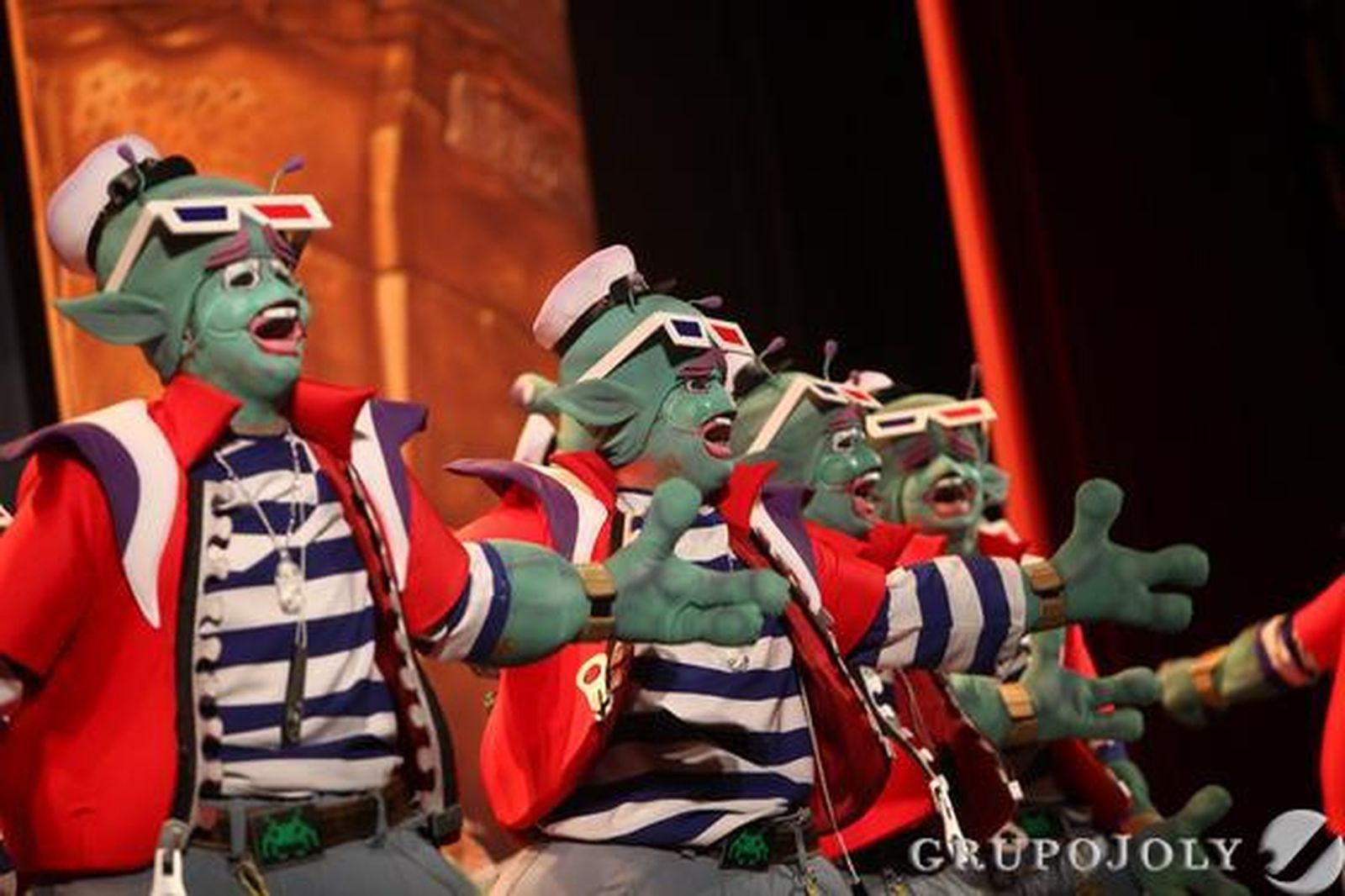 Las coplas. Abren cortinas y la comparsa nos descoloca. Y tanto. Un tipo complicado, un tipo chirigotero para un repertorio bonito. Creo que es la palabra. La comparsa de Tovar es tierna, es bonita y es, al contrario de lo que puede parecer, nostálgica, como añeja pero en otro universo. También hay momentos en los que se deshincha y no se defiende el repertorio con convicción y, quizás, por eso, hay veces que no suena todo lo bien que debería. Presentación deliciosa para contar una historia no tan rara. Ser aceptados por quien amamos. Ellos, de otro planeta, mueren en Cádiz y aunque quieren tocar al 3x4, "con estos dedos suena más a 3x2". Detalles simpáticos también durante todo el repertorio. Deliciosa presentación a los que siguen dos pasodobles muy emotivos (Tino escribe como a latidos). El desahucio desde el punto de vista de una joven pareja. El siguiente, al cuarteto con homenaje final para el grupo del Gago que ha pasado por muchas dificultades para estar hoy aquí. Mejor el primer cuplé de la independencia de Cataluña con toque para su grupo, los tres catalanes se han pirado. El segundo de las hinchadas, mejor desarrolo que remate. Al popurrí le falta fuerza interpretativa. Es un híbrido en toda regla... Interesante.