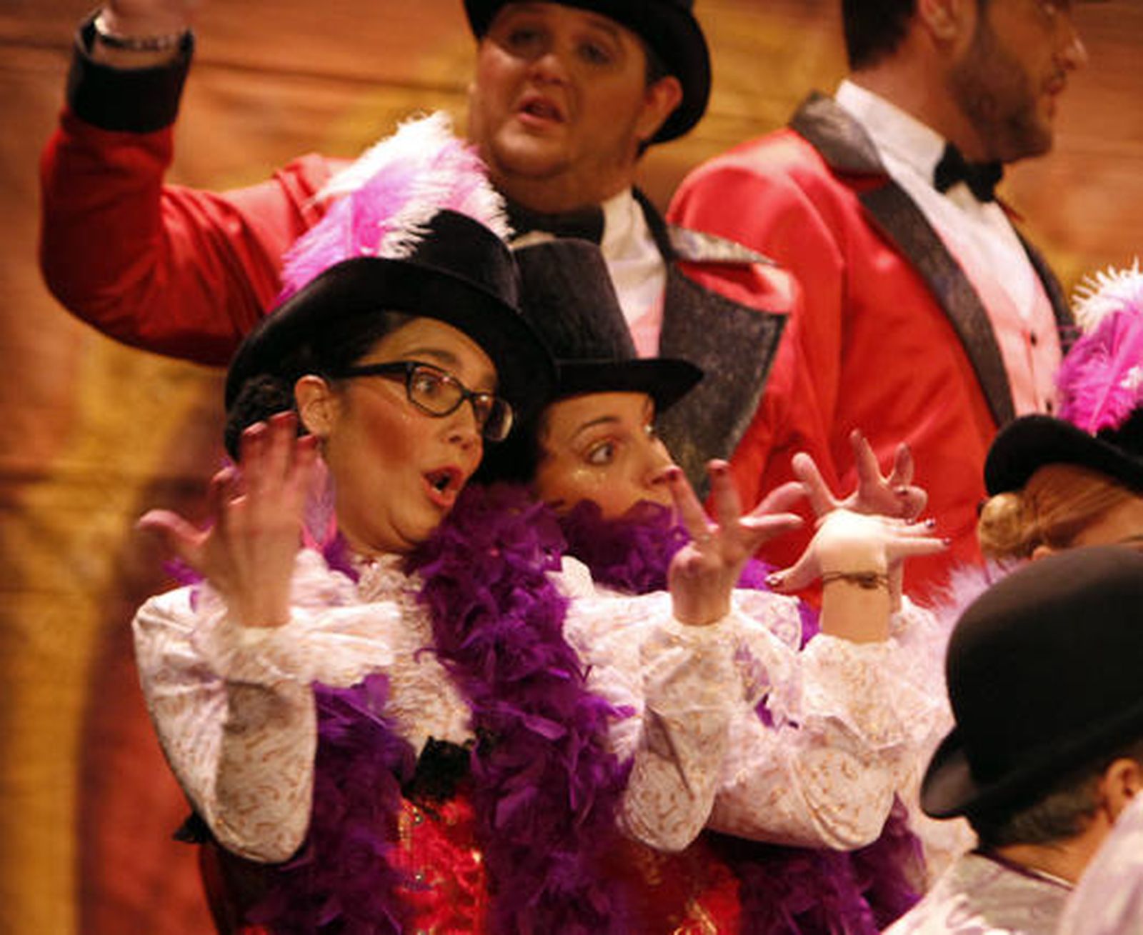 Letra: Antonio Bayón. Música: Francisco Reyes. Dirección: Carmen María Cabaña. El tipo: Intérpretes de variedades. Las coplas: De nuevo, Show must go on es utilizada para una presentación pero a su tipo les viene de lujo. Pieza amenizada con vientos y bajo y guitarra eléctrica. Muy movida. “Libre e insolente”, así se autodefine este joven coro mixto. Se defiende contra quien los tache de peseteros en el primer tango. Los impagos municipales son el argumento principal. La letra no está bien hilada. Cádiz sólo es el vago recuerdo del pasado en el segundo tango donde cantan que nos falta coraje. Algo mejor. Vocalmente las chicas no tienen protagonismo. Cuplé al yernísimo y a la duquesa. En la media. La interpretación, a veces, nos impide entender la letra del popurrí.