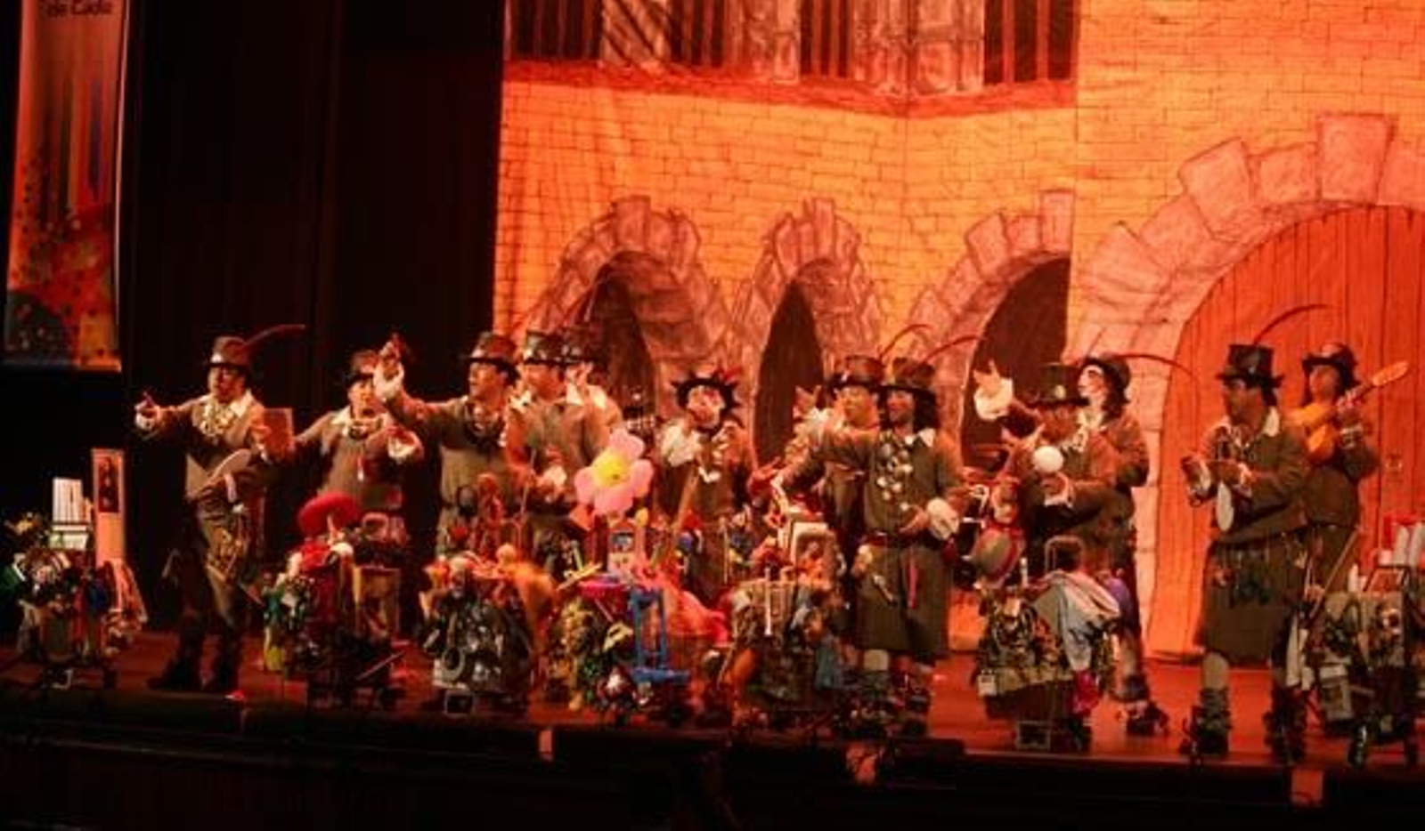Buenas voces, aunque poco conjuntadas, las que traen al Falla estos comparsistas linenses, que llevan el tipo de locos medievales. Le ponen voluntad y el auditorio les premia con sus aplausos. Nota:*