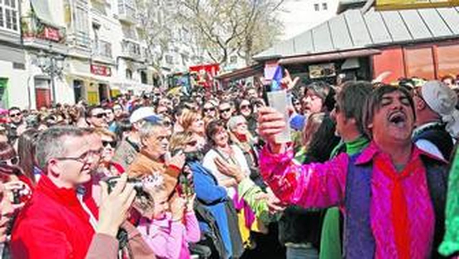 Cádiz se levantaba como el día. Alegre y soleada. La ciudad se disponía a sumergirse en su primer domingo de coplas con el ánimo bien arriba. Había ganas de escuchar, de cantar y de, como siempre, beber. Copas que para muchos gaditanos llegaron después de cumplir con su deber como ciudadano, acudiendo a la concentración que sindicatos convocó frente a Subdelegación de Gobierno como protesta ante la inminente y durísima reforma laboral. De esta forma, ya a las doce y media de la mañana, cuando el astro rey coronaba el día, se dejaron ver las agrupaciones más tempraneras por el centro de la ciudad. Qué a gusto estaban los ciudadanos que se tomaron un desayuno tardío en la calle Pelota con el repertorio de 'Por motivos naturales no fumamos en horarios laborales'. La chirigota de José María Barranco fue una de las primeras en repartir coplas en una ciudad que despertaba después de una agitada noche de sábado. Los restos del naufragio aún se dejaban ver por algunos rincones del casco histórico, como las pintadas que deslucen nuestra magnífica Catedral.