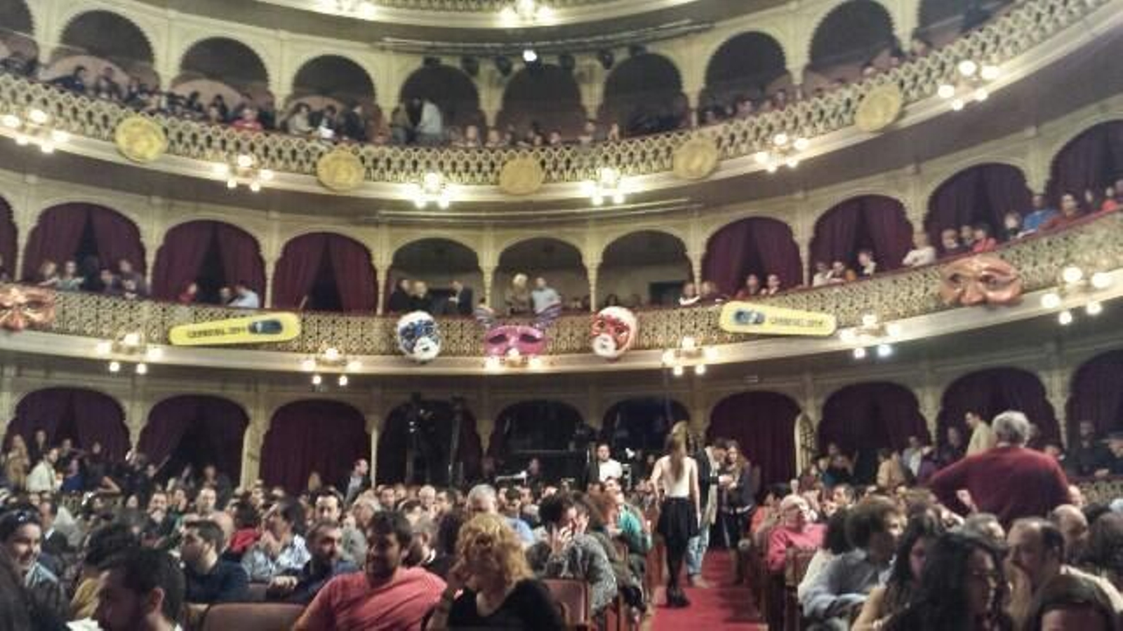Por primera vez el teatro se engalana para esta fase, que comienza con la actuación del coro 'Los bacanales'
