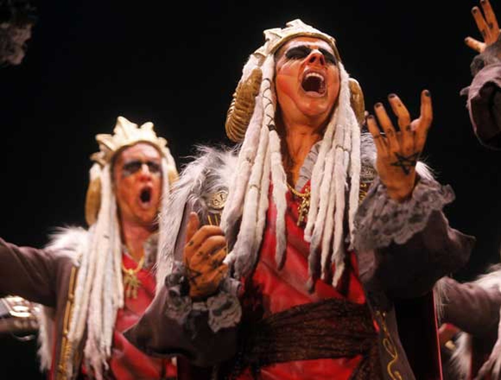 Noche de miedo para la comparsa. Los gitanos de El Puerto y la sevillanas de 'La niña' montaron una fiesta flamenca en el reino de unos príncipes del mal que no asustaron tanto como se esperaba. La nueva apuesta de Juan Carlos Aragón ofreció una atractiva puesta en escena y un repertorio muy metido en el tipo de diablos con un toque macarra dispuestos a demostrar que "no hay demonio más grande que el hombre". La poesía de Juan Carlos ganó un aire canalla y el grupo lo defendió bien en conjunto, al margen de algún que otro exceso. Sin embargo, y esto no es nuevo, su primer pase no acabó de convencer, visto siempre desde el punto de vista de la máxima exigencia. Les falta un pellizquito que levante al público, demasiado frío hasta en el averno que gobiernan estos príncipes tenebrosos.