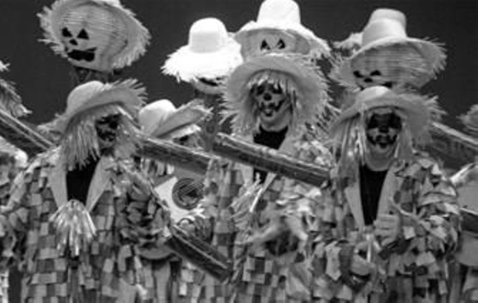 Calabazas. El tipo se me ocurrió viendo un anuncio de televisión con un espantapájaros l No me quedan fotos porque alguien que luego fue miembro de la comparsa se las quedó y las vendió