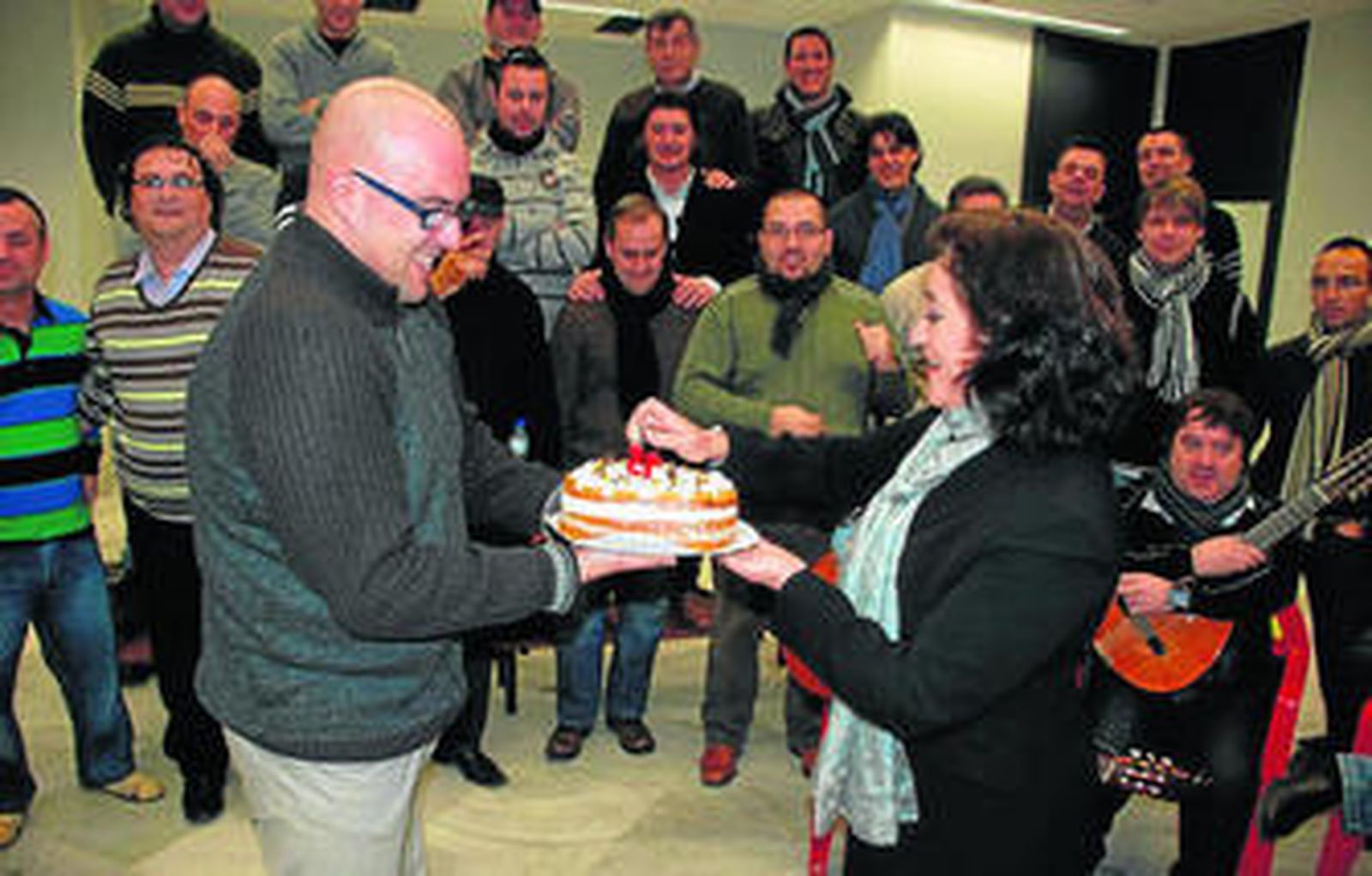 Tras la actuación de los coristas gaditanos, la presidenta del coro de la asociación de amigos del Maestranza, Isabel Buzón, descubrió una tarta con la que ambos grupos se felicitaron por esa década y media desde sus respectivas fundaciones y sellaron el hermanamiento. Buzón aseguró al coro de Rafael Pastrana Guillén que los músicos del Maestranza "nos hemos convertido en auténticos fans vuestros", felicitándoles por un repertorio que fue muy valorado también por el propio Sampil.