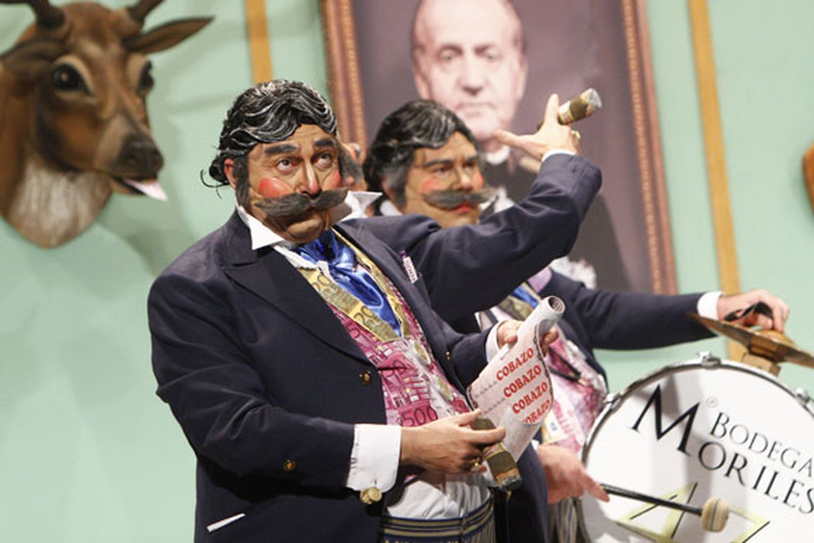 Última chirigota de la noche, la del Vera, que volvió a ofrecer un repertorio muy completo. Pasodobles de altura, el primero comparando al capitalismo con el nazismo, bien hilado. La dictadura del dinero en Europa hay que combatirla como se combatió al fascismo. Segundo, muy acertado, para el pregonero. Ya les llegará el turno al Love, Quiñones o Juan Carlos Aragón; ahora toca presumir de tener a un pregonero de la talla de Jorge Drexler. Precisamente el uruguayo también protagonizó, con cameo incluido, el primer cuplé. Segundo para los sobrecitos del PP, ambos muy buenos. Buena chirigota, con plaza a la espera de lo que haga la competencia.