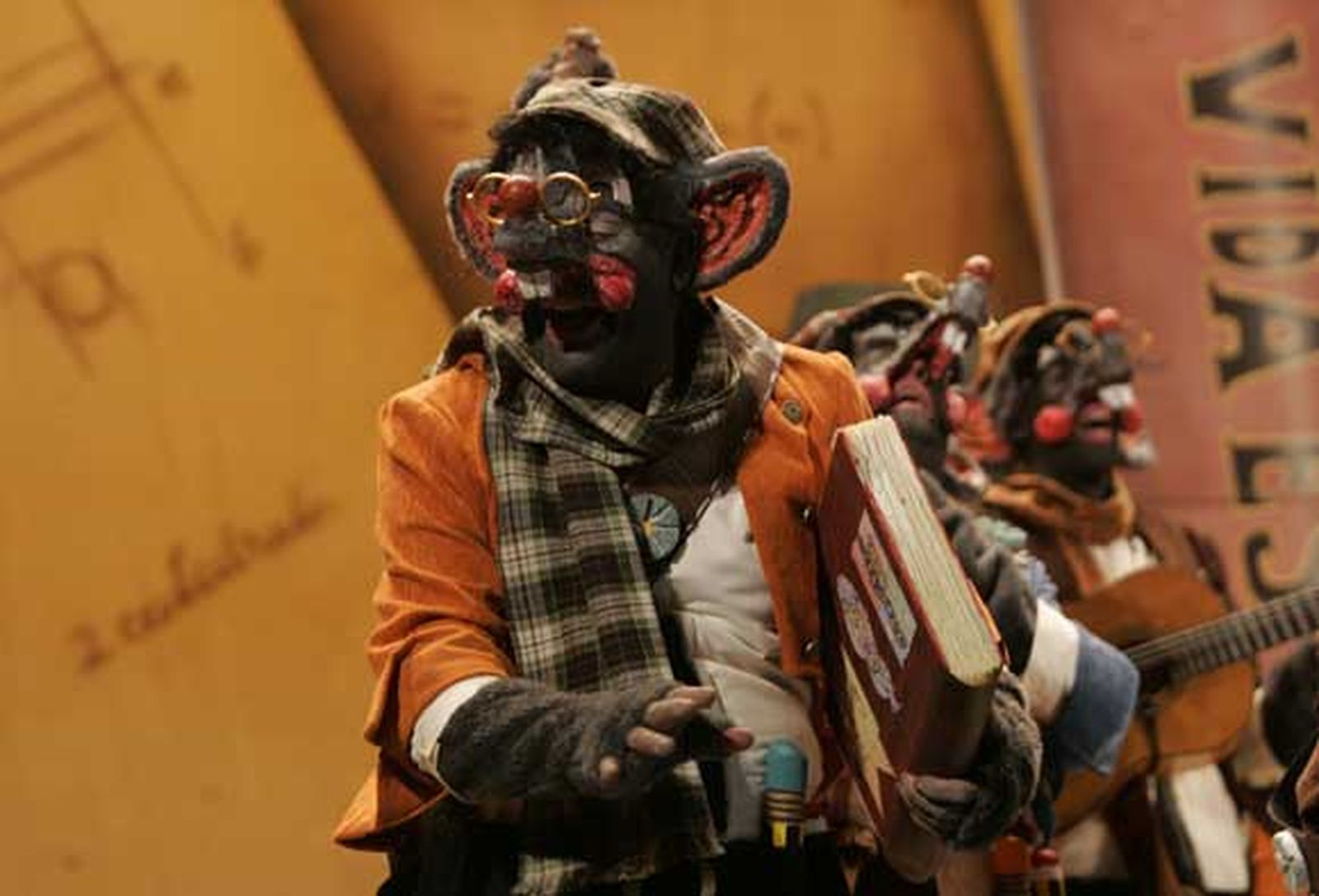 En preliminares: Estos comparsistas algecireños son unos auténticos ratones de biblioteca. Curioso tipo, muy conseguido. Buena presentación, en la que cuentan su historia. Música alegre y buena afinación la de estos ratoncitos. Buen primer pasodoble en el que, aprovechando el tipo, cuentan que conocieron las coplas de Carnaval en su biblioteca y desde entonces no pueden parar de cantarlas. Por eso no entienden que no se las considere cultura. Bien defendida, aunque es algo largo. Segundo pasodoble al ritmo de 3x4, sin guitarra, que las buenas coplas se cantan a pelo. Su pasodoble, que viene de Algeciras, es tan gaditano como cualquiera de aquí, claro que sí. Mucha gente del patio de butacas se levanta para aplaudir esta copla, otro gran pasodoble. Hacen degustaciones de libros en el primer cuplé, con final reivindicativo. Los únicos libros que no pueden roer son los de cuentas de los Ayuntamientos, que no hay quien los encuentre. Segundo para un perro con gran olfato. Era mejor el primero, pero este se lleva más aplausos. Popurrí alegre e interpretado con gusto, quizás demasiado bajito y con algunos fallitos al final. Final con homenaje para la comparsa Los Pajeros de Paco Alba y para copleros de hoy. Mucha gente en pie para despedirlos, han gustado.