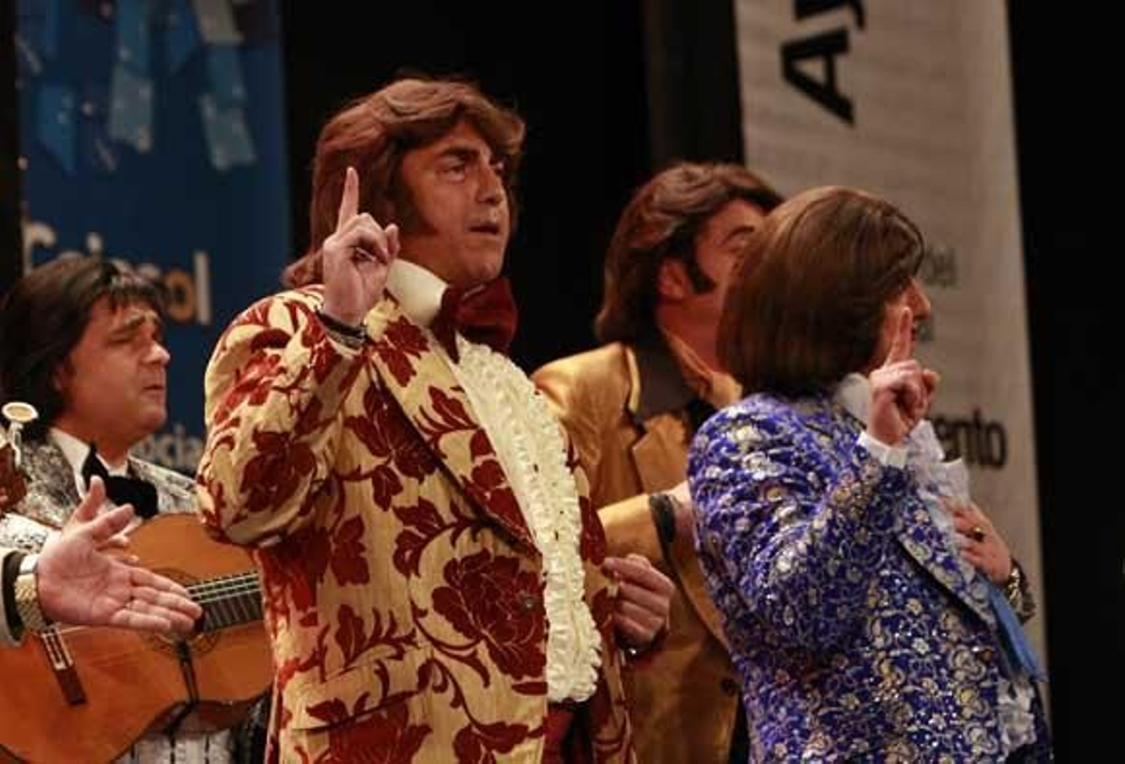 En preliminares: Muy buen tipo el de la chirigota del Selu, que recuerda a artistas setenteros como Los chichos o Los chunguitos. Como siempre, bordan la interpretación y clavan cada gesto y cada palabra. Sorprende la música del pasdoble, perfectamente metida en el tipo. El primero para Belén Esteban y el segundo para los controladores aéreos. Simpáticos, aunque se esperan letras mejores en próximos pases. Primer cuplé para los deportistas y el doping, segundo, mucho mejor, para Messi y su Balón de Oro. Popurrí de menos a más, muy bien aprovechado musicalmente. El tipo es muy bueno y podrán sacarle un gran partido a lo largo del Concurso. Se esperan letras mejores, eso sí.